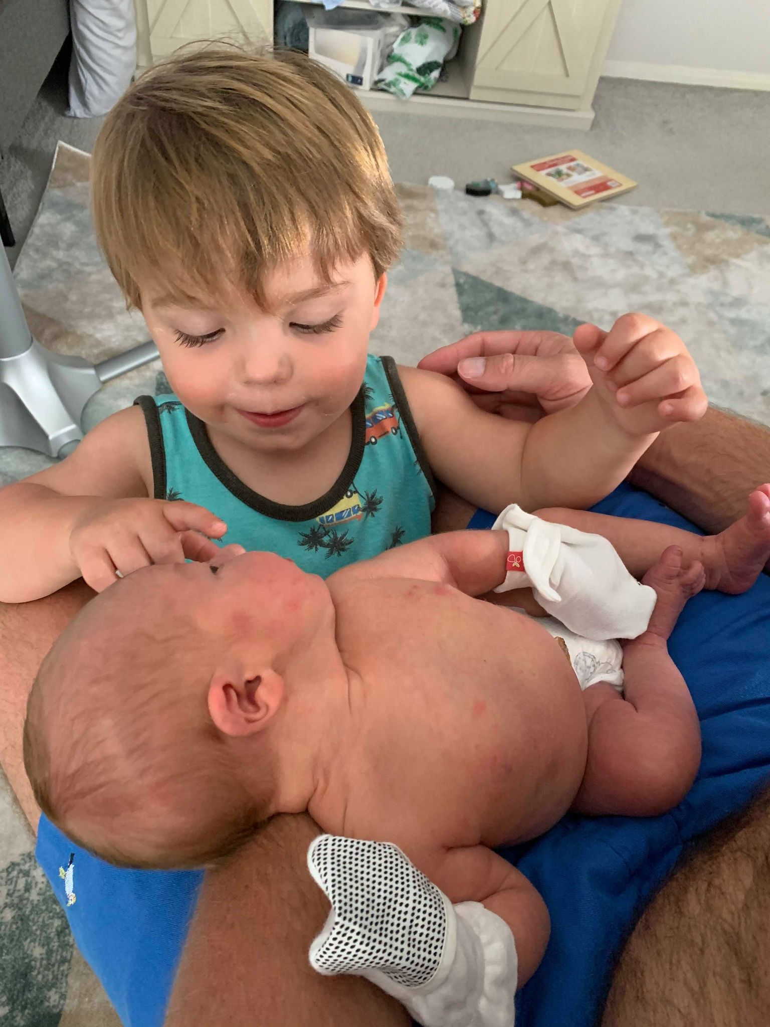 Wally and parents were home by Sunday evening and Wally got to meet his big brother, Augie.