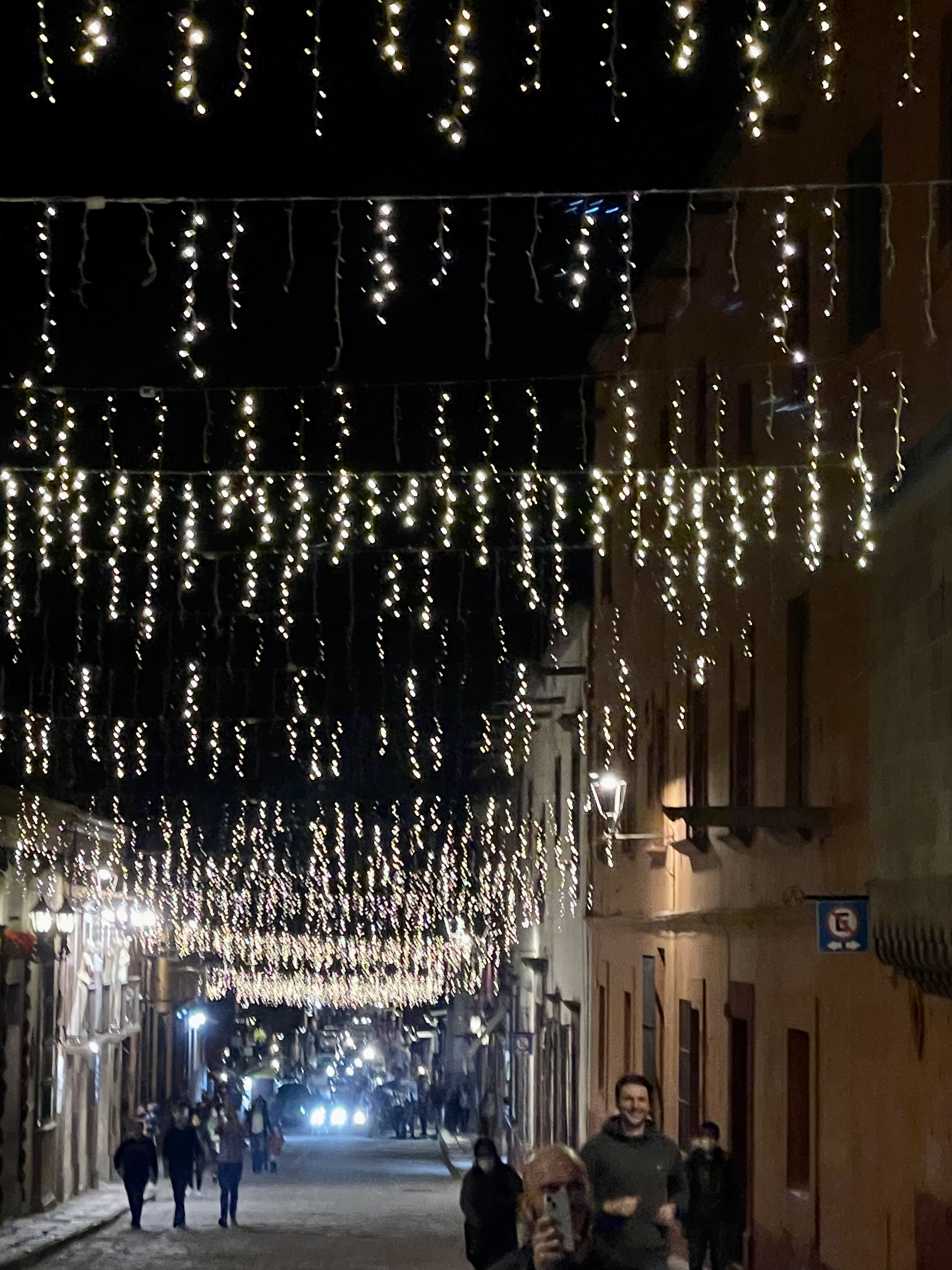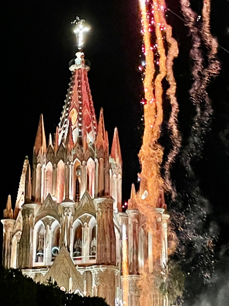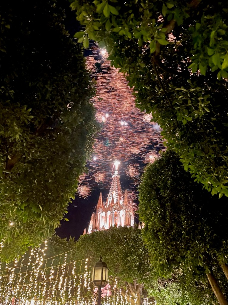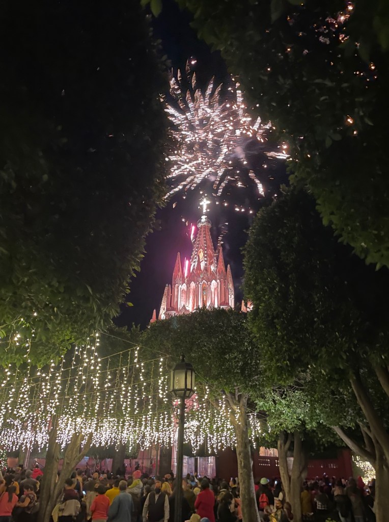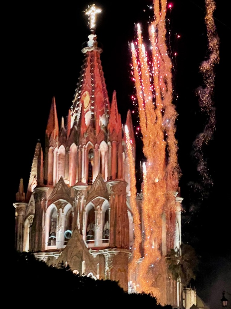 Tonight was the official tree-lighting ceremony in San Miguel de Allende. As always with any ceremony here, that includes a bodacious fireworks display. The fireworks seemed to go on forever. What a sight!