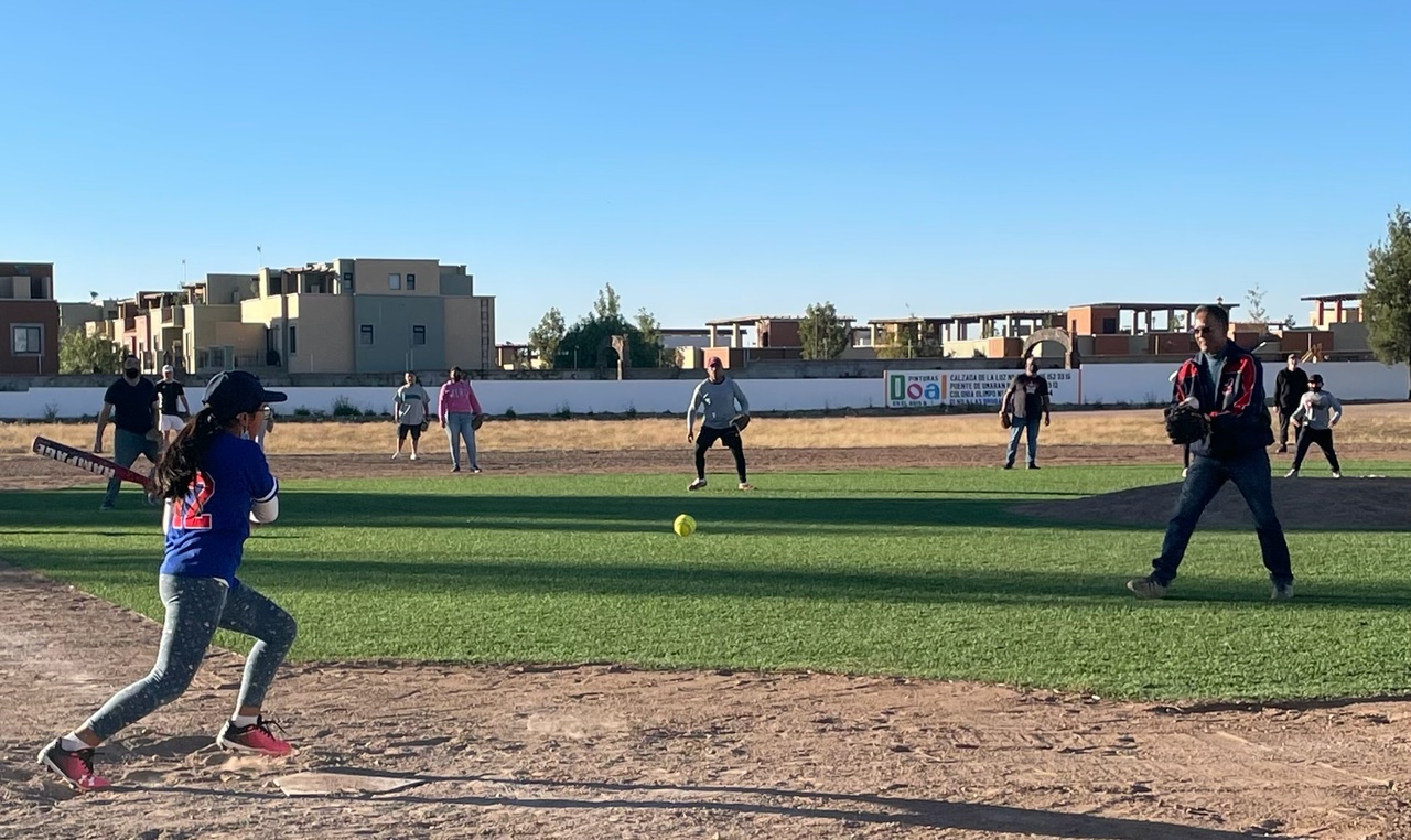 A lot of members of Efrain’s “support team” showed up to watch the kids and parents play ball, and some even took a turn at bat.