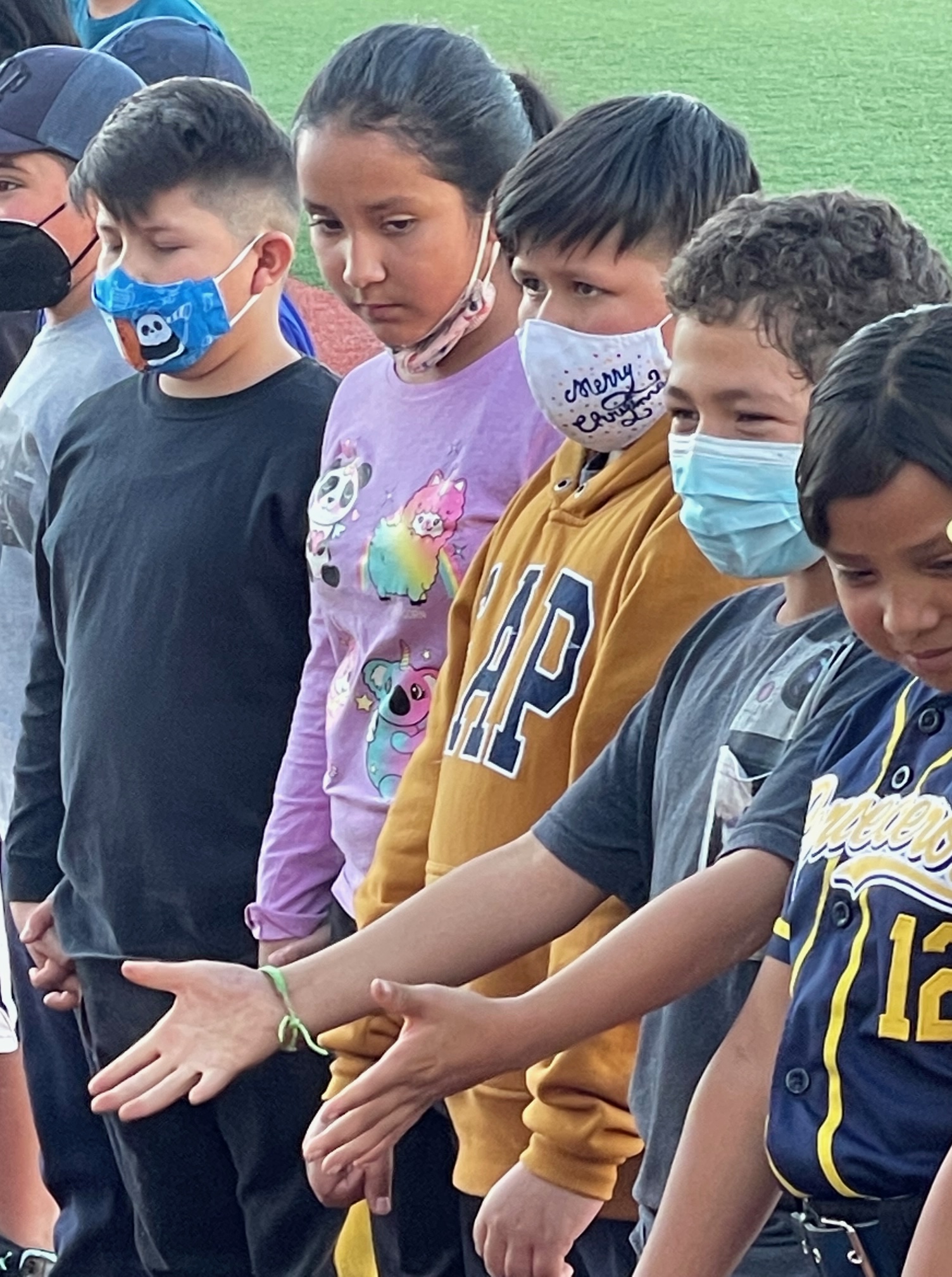 Even after the game was over, the tamales were eaten, and the pinata smashed to smithereens, about 20 of the kids were out on the turf kicking the rubber soccer balls they’d received as gifts — laughing and joking and showing each other the futbol skills that they nurture right alongside those for baseball.
