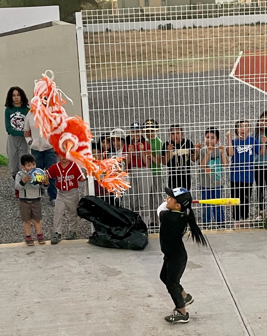 And shortly after that, the kids were back swinging a bat — only this time at a candy-filled pinata.