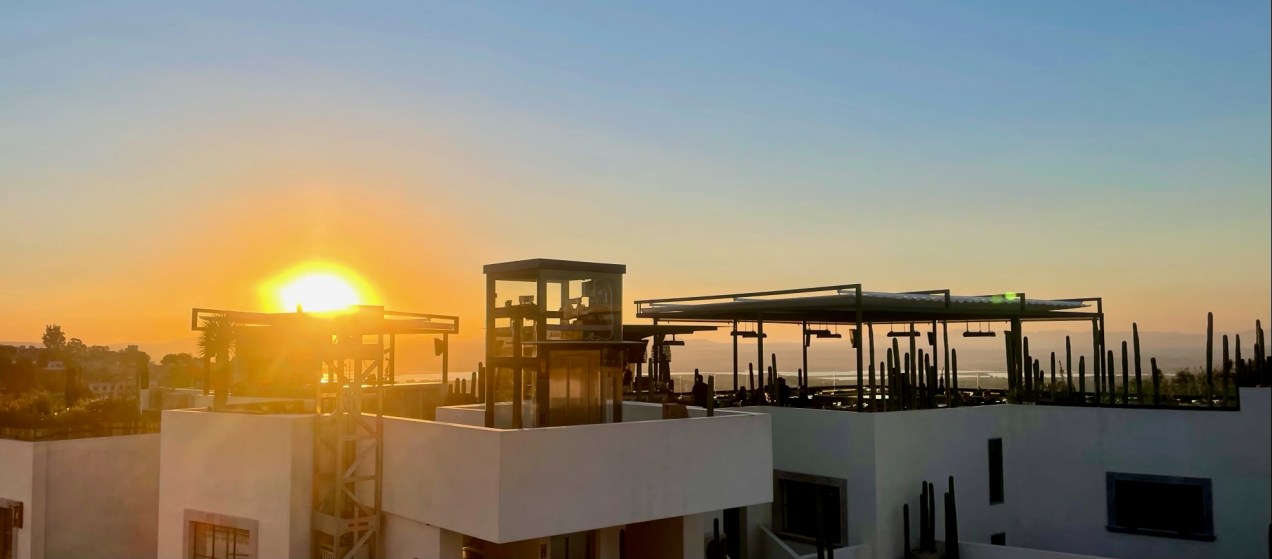 Climbing the stairs to Hachmans restaurant on the roof of the new Amatte hotel in San Miguel de Allende.