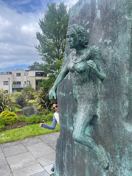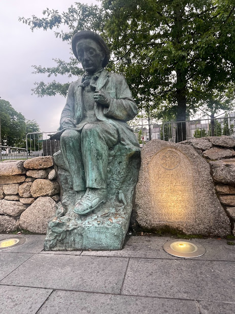 Not far away is a bronze statue of the impish-looking writer Pádraic Ó Conaire, a son of Galway much as Dublin identifies with James Joyce. He was born in Galway in 1882. He was a leader in the movement to revive Irish as a spoken and literary language.
