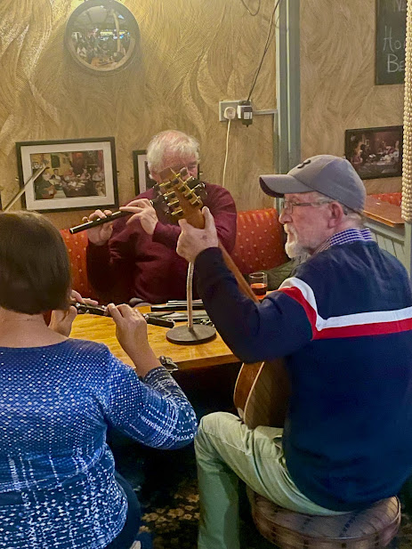 Indeed, by 8:30 nearly a dozen musicians have assembled. We finish our lamb stew and fish medley and settle in for a Celtic craic of the finest sort. Such a night! Such musicianship.