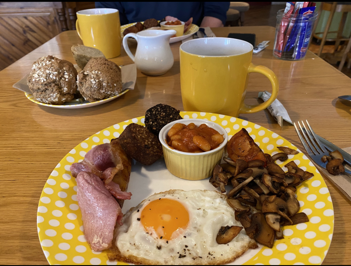 Before we know it we are sitting in the Yellow Submarine, a pub on Corofin’s main street. We are seated in front of a warm fire with a couple of half-size Irish breakfasts and coffee.