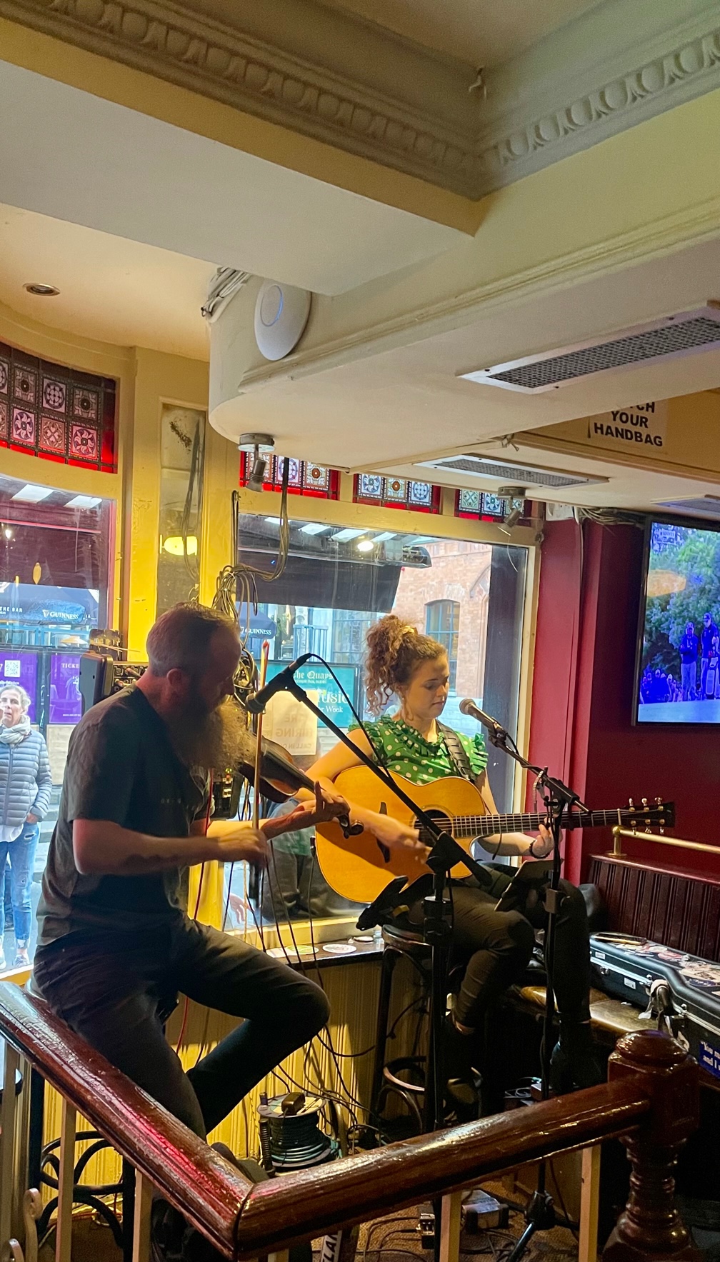 At least, there is an awful lot of Guinness flowing and rowdy singing of songs. Well, some of this is from a rugby club that has crowded into The Quays Bar beside us. If you know rugby — the Guinness and songs flow on Sunday afternoons, win or lose.