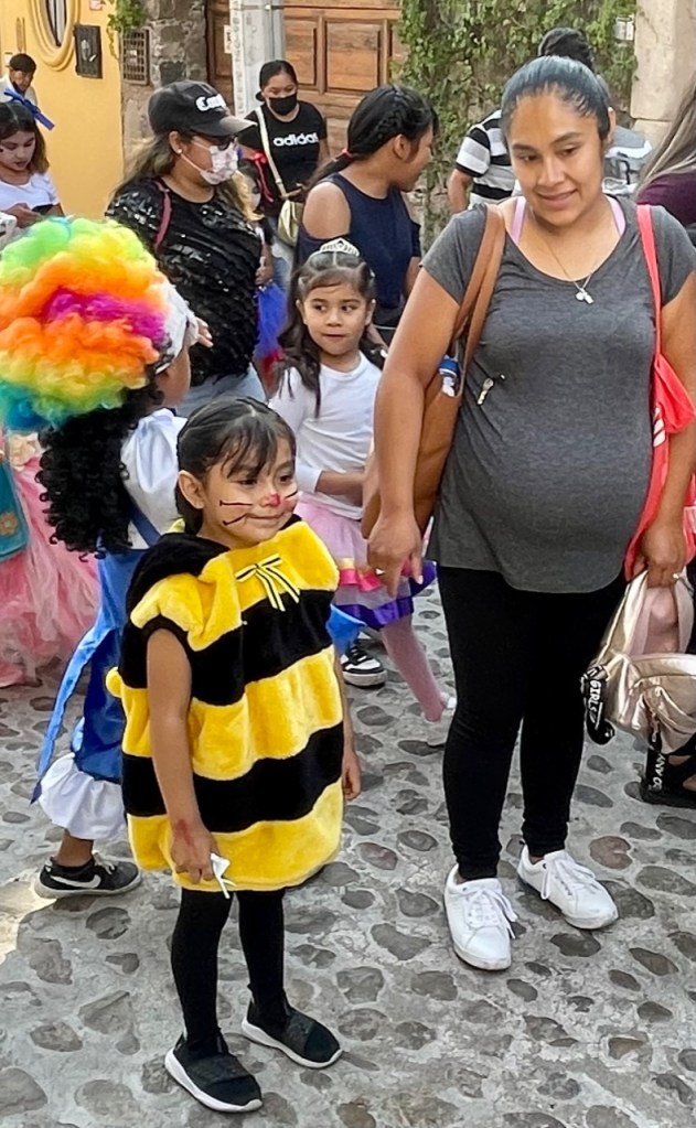 I was on my way to Pilates. (I know this woman who rocks at teaching floor Pilates. …) As I turned off Calle San Antonio and headed down Calle Allende there was a distinct change in the atmosphere. People of the parental type were hanging on the corners near the church and all looking down the street.