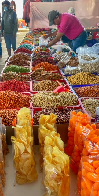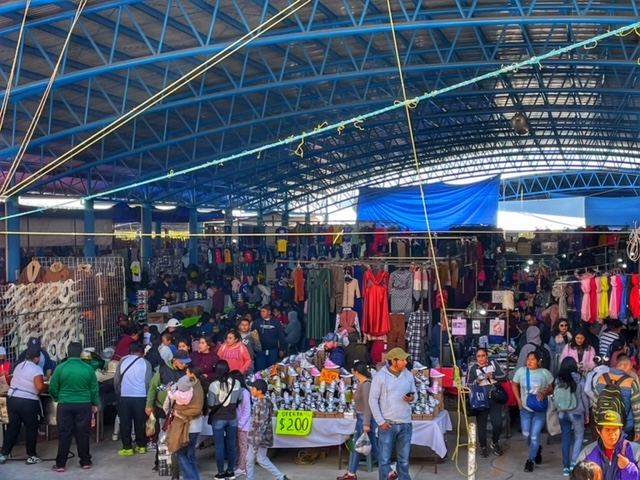 I love the hustle and bustle. I love the jockeying for position at a tabletop clothing dump. I love to hear the shouts of “Barata! Barata! Barato!” and “Venta! Venta! Venta!” I love the smell of the food, the fish on ice, the produce, the fresh piles of strawberries. The piles of hardware and kitchenware and racks of hats, and row upon row of shoes, and … well, just name it, there’s a pile of it somewhere.