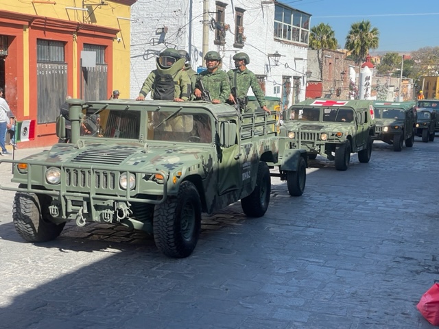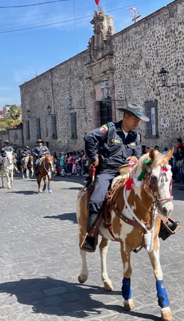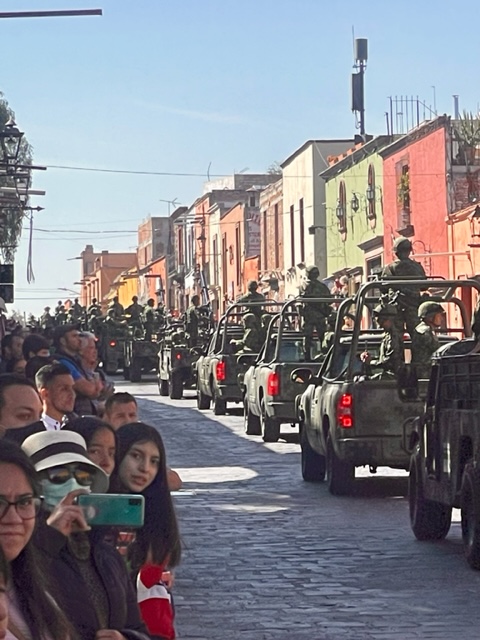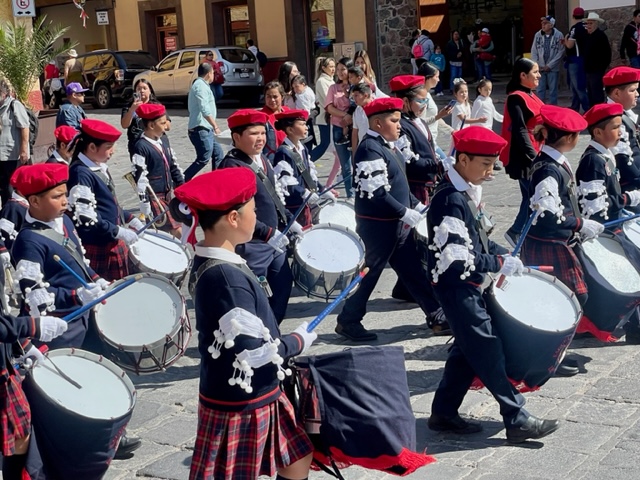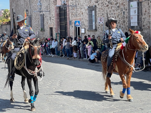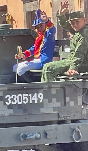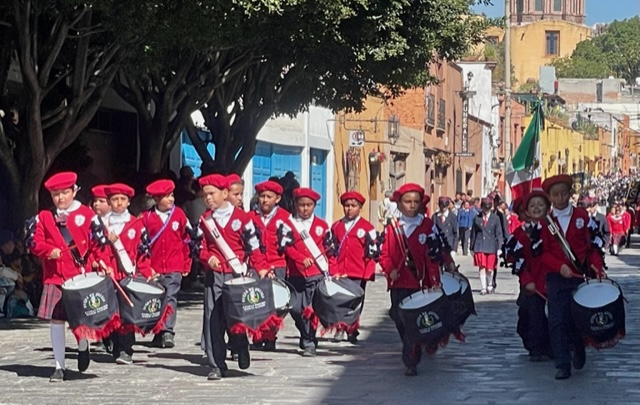 San Miguel de Allende, named in part after its favorite son, has been celebrating all week with music, cultural dances, and more — and today, the annual parade which is a most interesting merger of military might and marching school children. The parade also celebrates first responders, marching bands, the conservation corps, civic leaders, beauty queens, and equestrians.