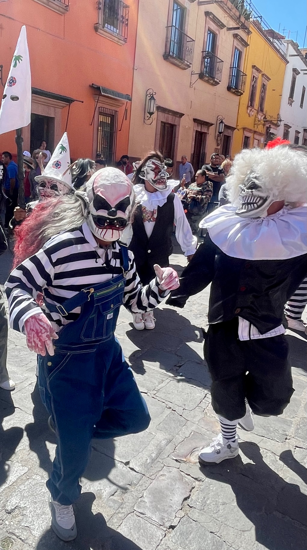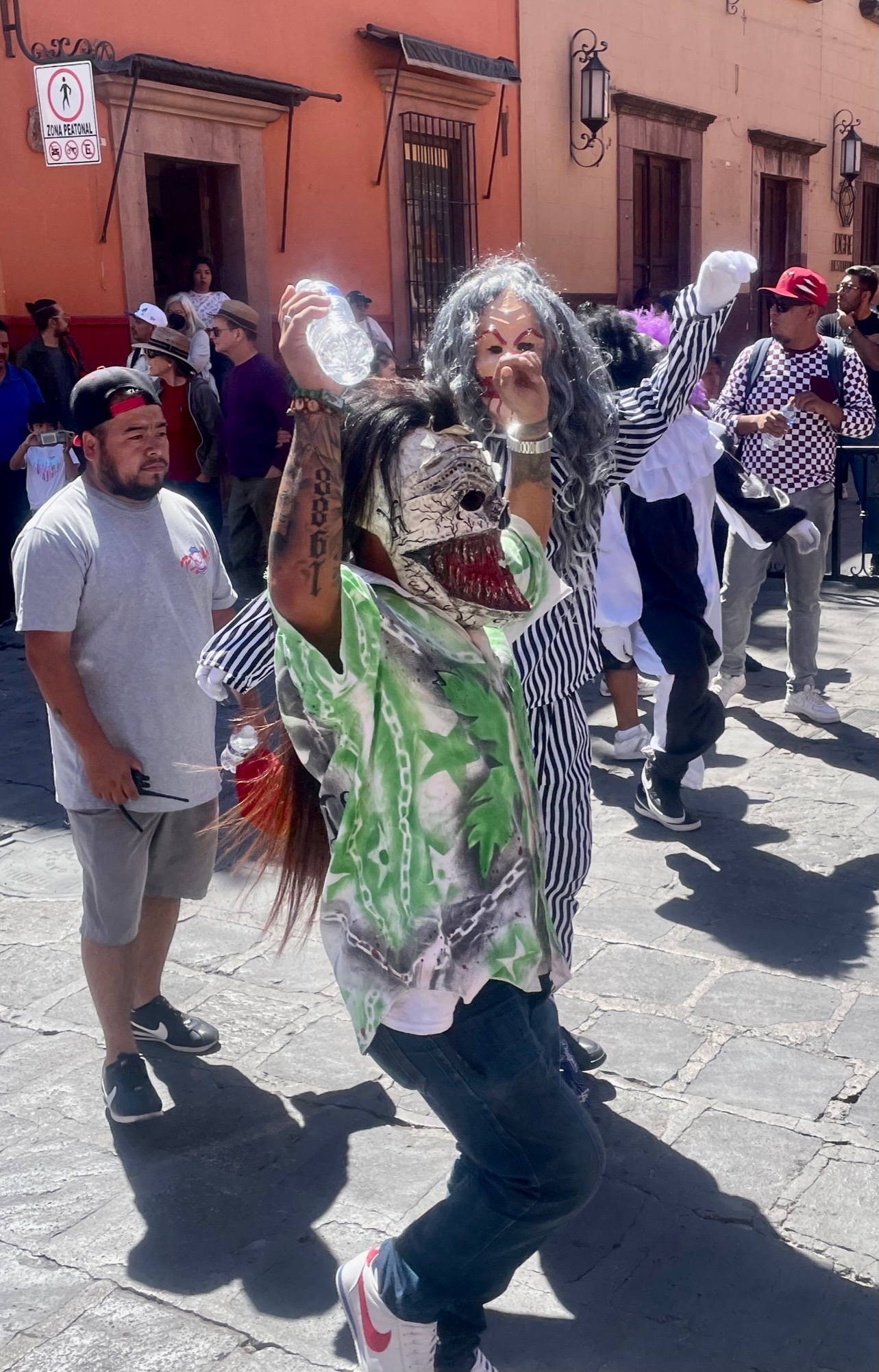 Those are the dancers who follow the funeral entourage. You’ve seen them in scores of San Miguel de Allende parades and processions and celebrations. And yes, now, even a funeral.