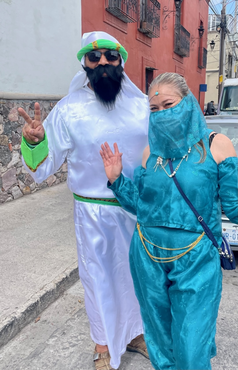 All of this is just an early prelude to the mid-June celebration called Dia de Locos. That’s when thousands of costumed celebrants dance and jiggle their way down the Ancha and into Centro while many thousands more lined the streets to cheer them on and maybe snatch from the air some of the hundreds of pounds of candy tossed by the marchers.