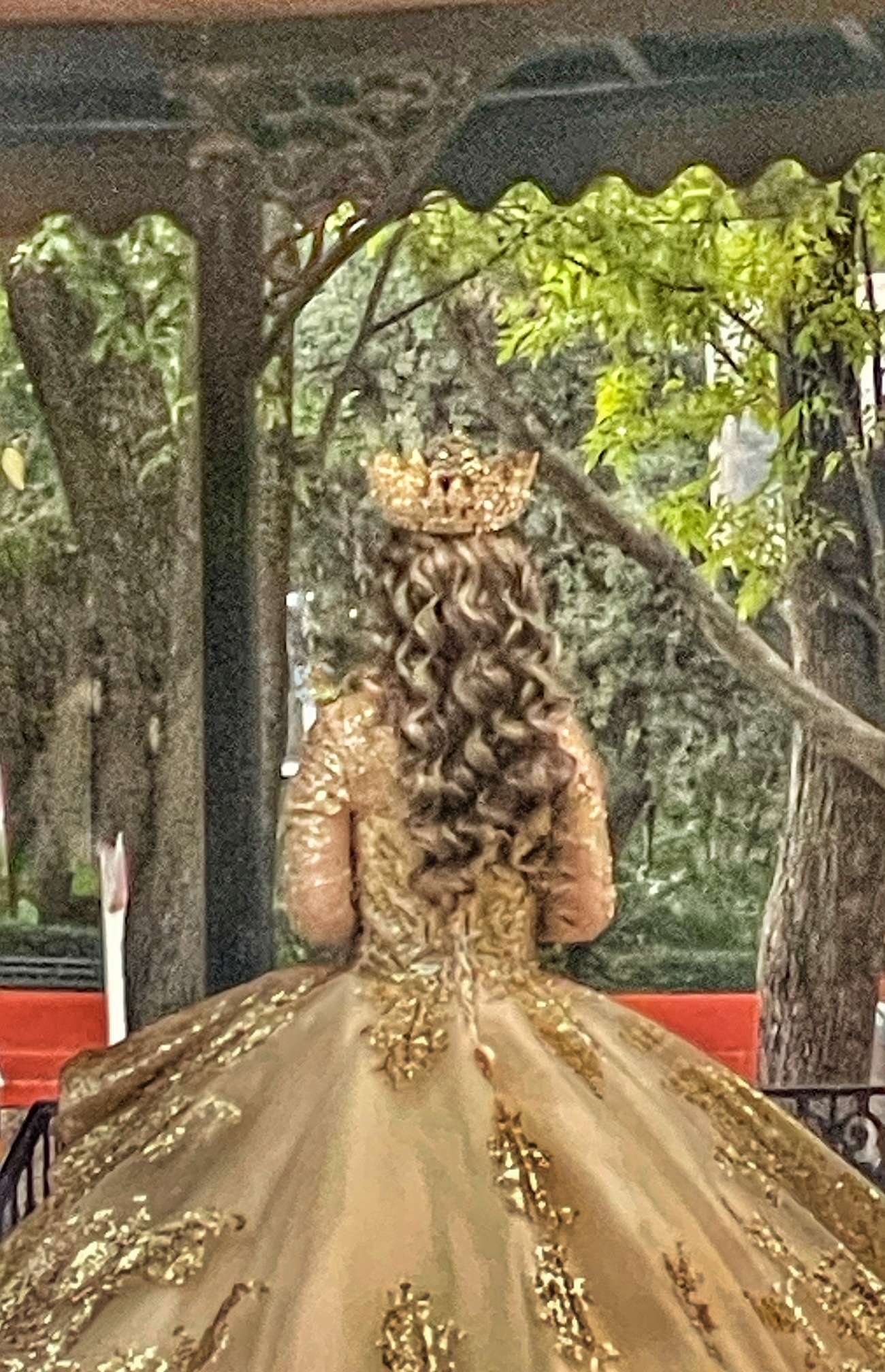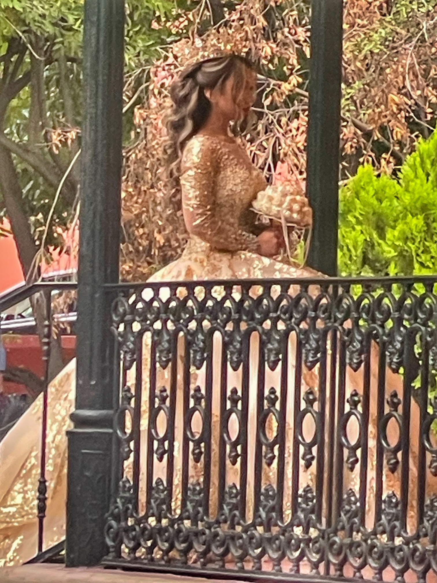 It was a different world next door at the stately old gazebo. A fairy tale was unfolding. Like all good princesses, she would allow only a tantalizing glimpse of her face. The air of mystery was exquisite.
