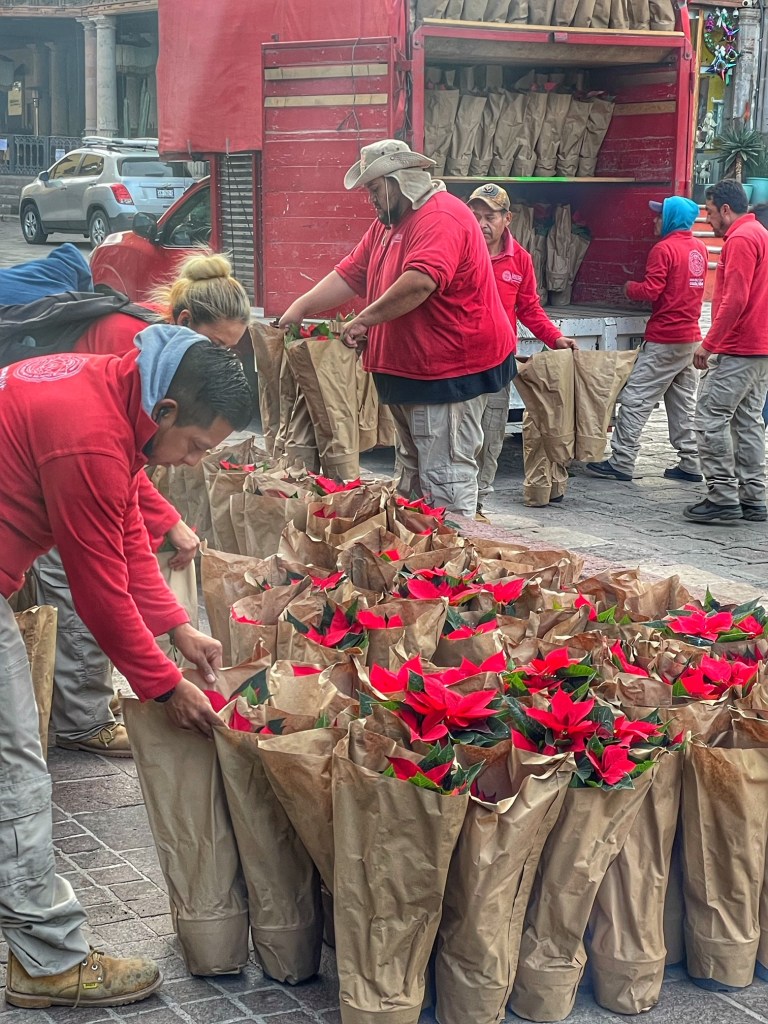 Meanwhile, as Moppit and I sat in the Jardine, enjoying the flow of students, worshipers, tourists, and other dog walkers, the city crews began pulling up with truckloads of poinsettias. They will replace the truckloads of marigolds that were pulled out around Thanksgiving.