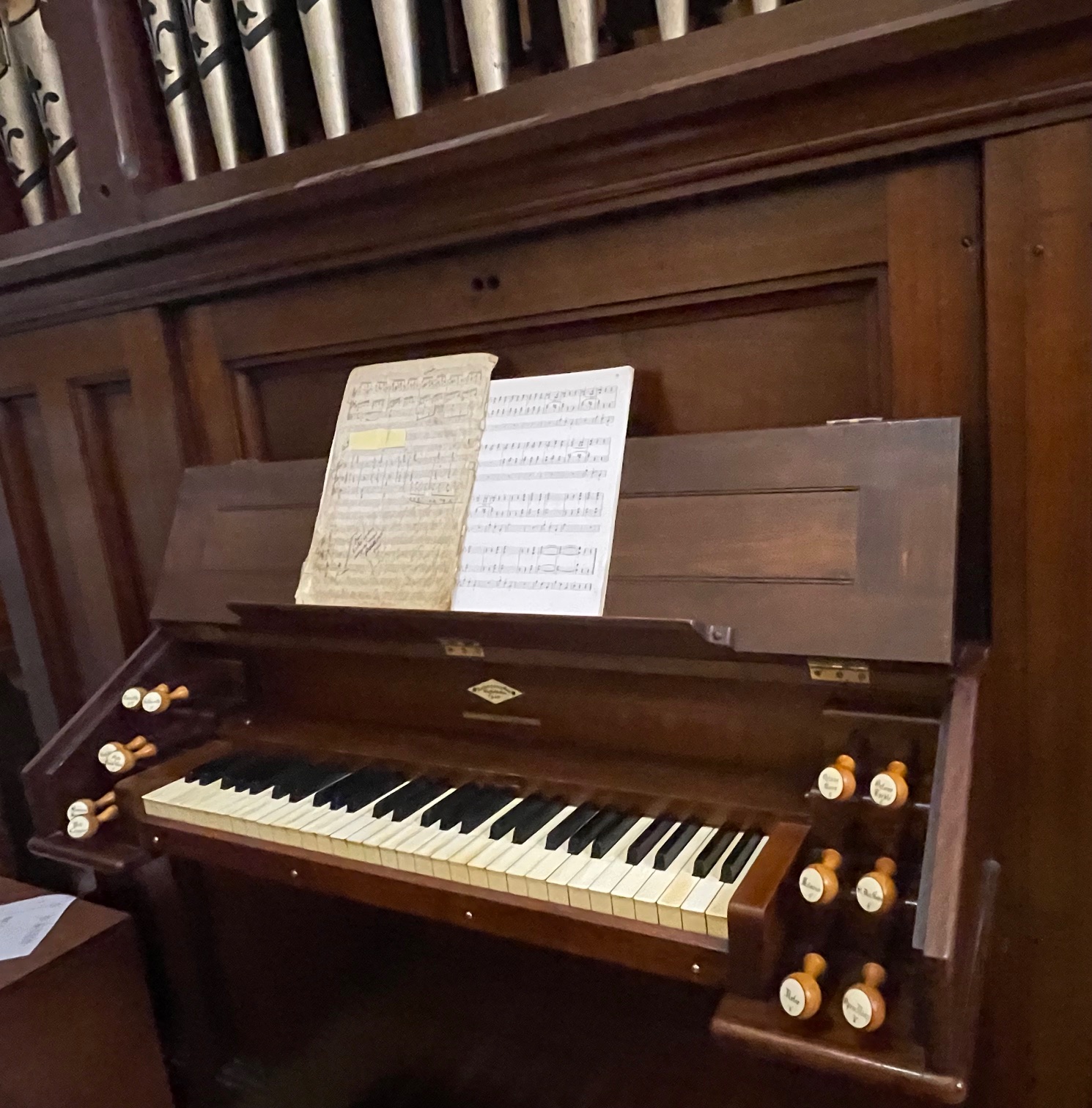 “It is magnificent,” he enthused. “You see that it has only one keyboard and yet it has such a range of sound.” His one observation was that the stops that provide the keyboard its range take a bit of muscle to pull out — not an easy feat when your fingers are rolling a glissando down the keys.