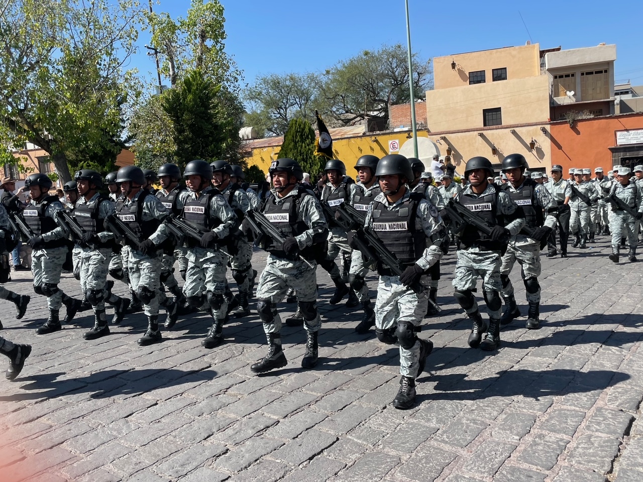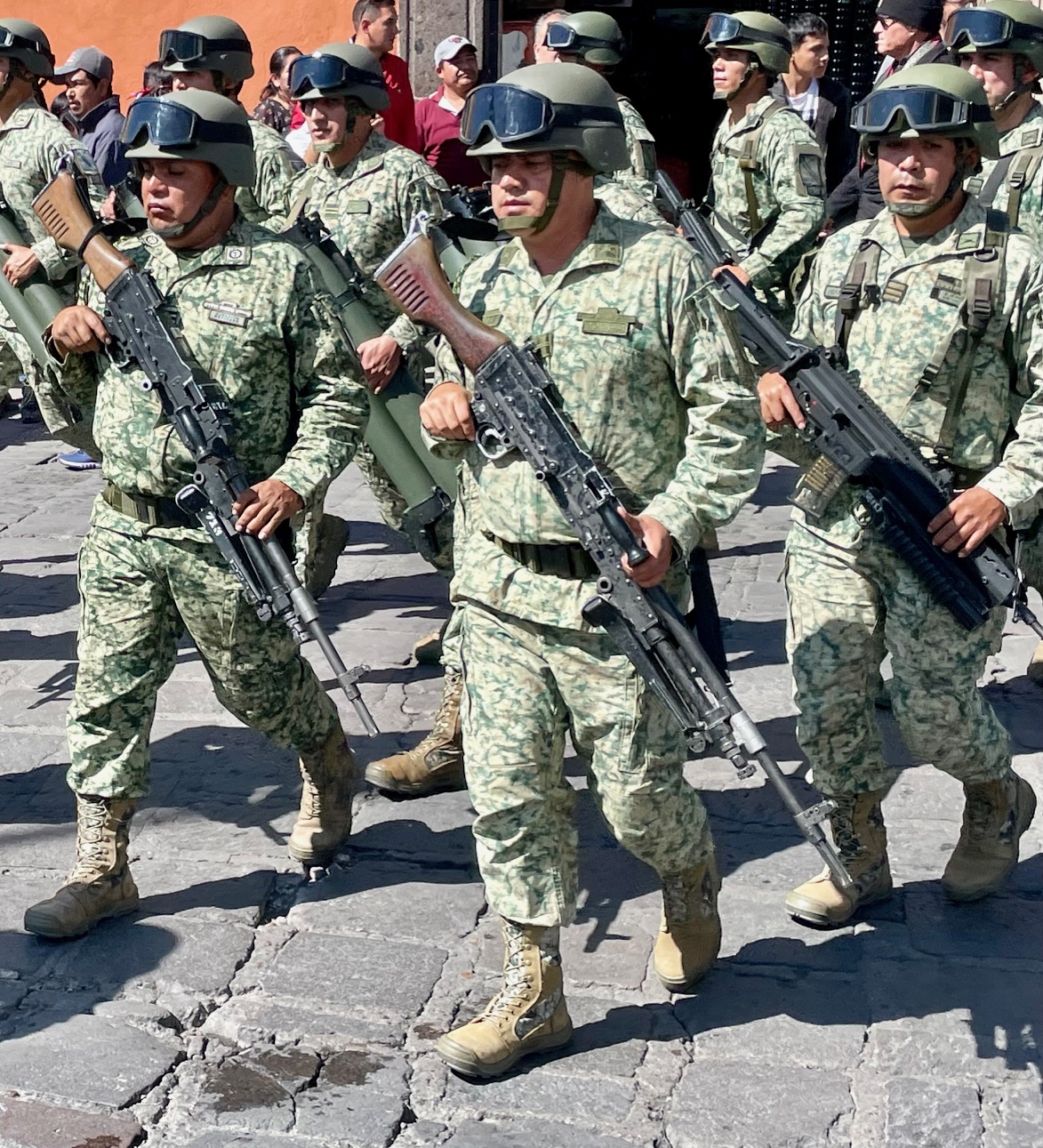 The parade is a mix of school children, college and tech school students, soldiers, National Guard units, public security agencies, marching bands, and beauty queens. There were groups from Celeya, Leon, and Guanajuato augmenting local marchers.