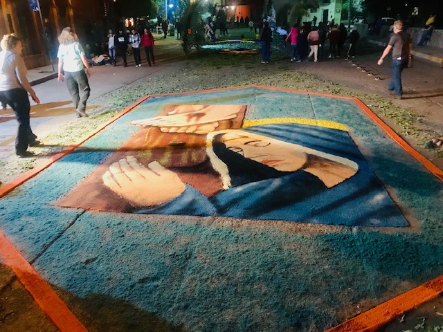 The procession of Senor de La Columna begins around sunrise on Sunday but really starts on Saturday evening when the air begins to cool. The entire length of Independencia, leading through San Antonio Abad and Calle San Rafael to the front of the Templo de San Juan de Dios is covered in elaborate sawdust art and other venerations.