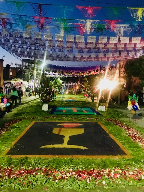 Generations of whole families, neighbors, and church and social groups join together to make beautiful but temporary street murals. People will be working through the night, even as worshipers walk from Antotonilco to the upper end of Independencia.