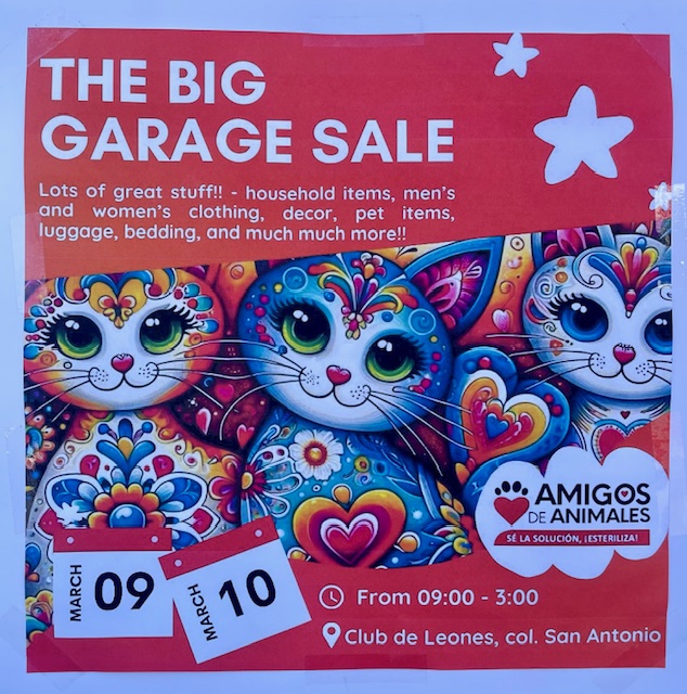 When you are the best, you don’t need any other name: “The Big Garage Sale” returns to Club de Leones in Colonia San Antonio. (right across the street from the church. The sale benefits Amigos de Animales which runs a regular campaign of sterilization for pets and strays.
