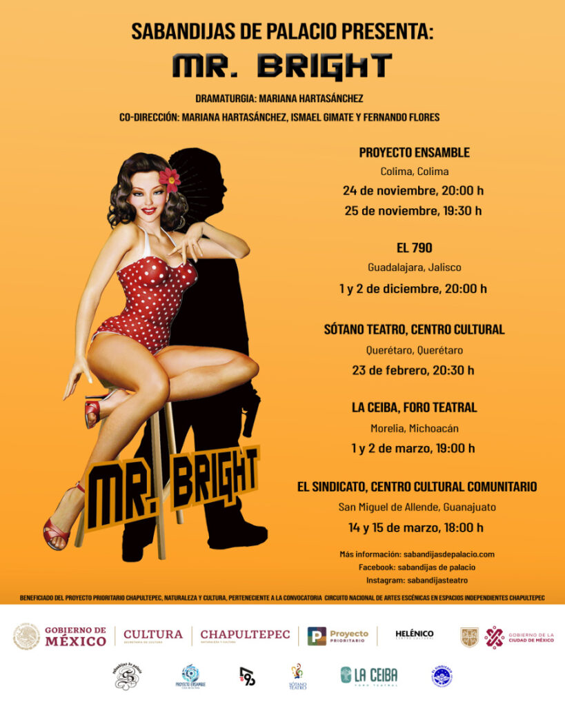 “Mr. Bright” is set in 1953 when a woman whose husband died in suspicious circumstances arrives at the office of an obscure film producer, Mr. Bright. What appears to be a harmless visit grows into something more sinister. Intriguing, no? It is described in Mexican Theatre as “Irreverent, politically incorrect and deeply painful … A very clear criticism, intelligent in its way of expressing it and very accurate.”