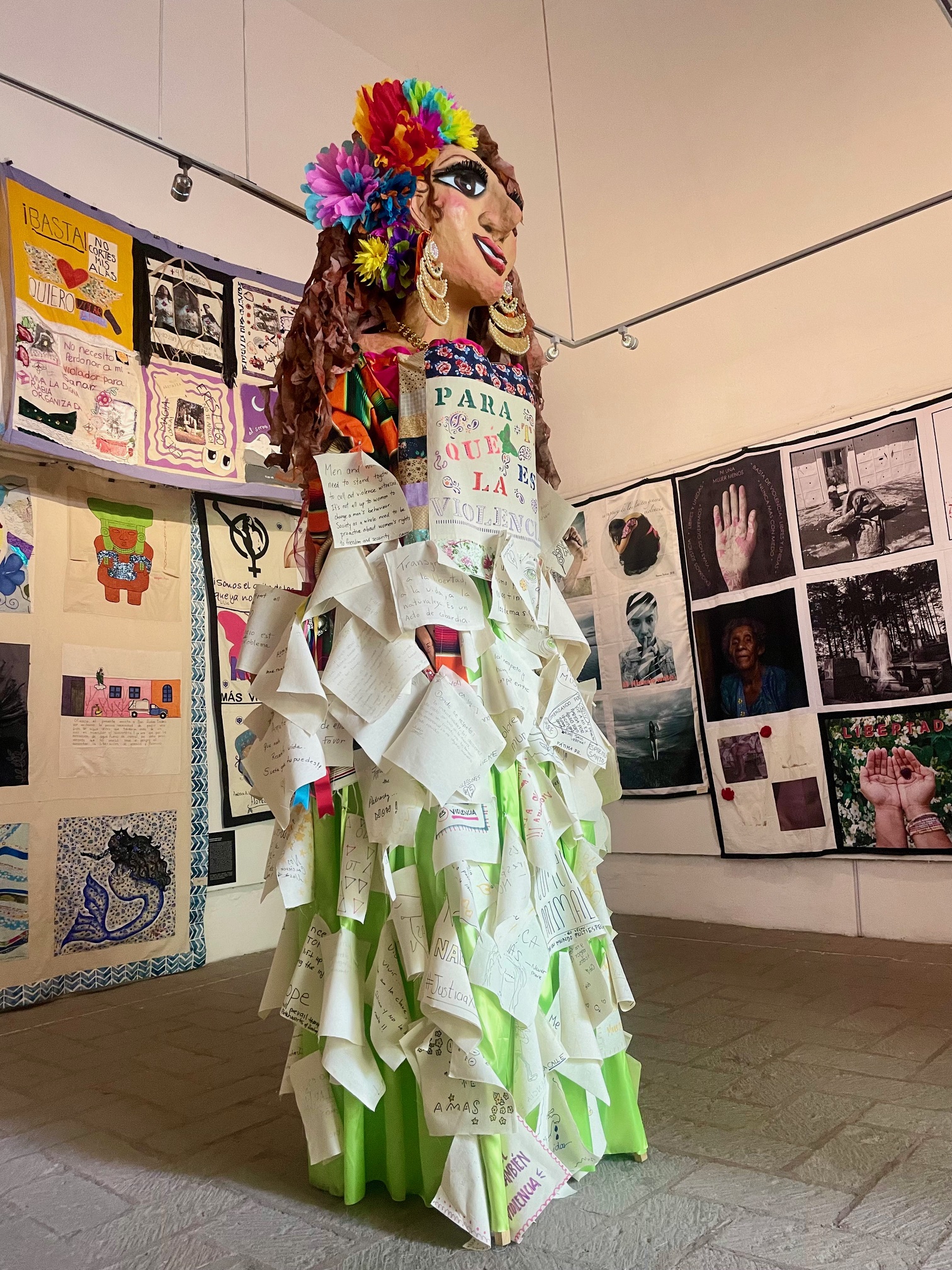 The largest and most obvious is La Manta de Curación (The Patchwork Healing Blanket). The rooms, filled with squares inspired by the experiences of their creators, are filled with competing voices of suffering, pain, anger, and hope and repeated calls to stop the violence against women, children, and the environment.