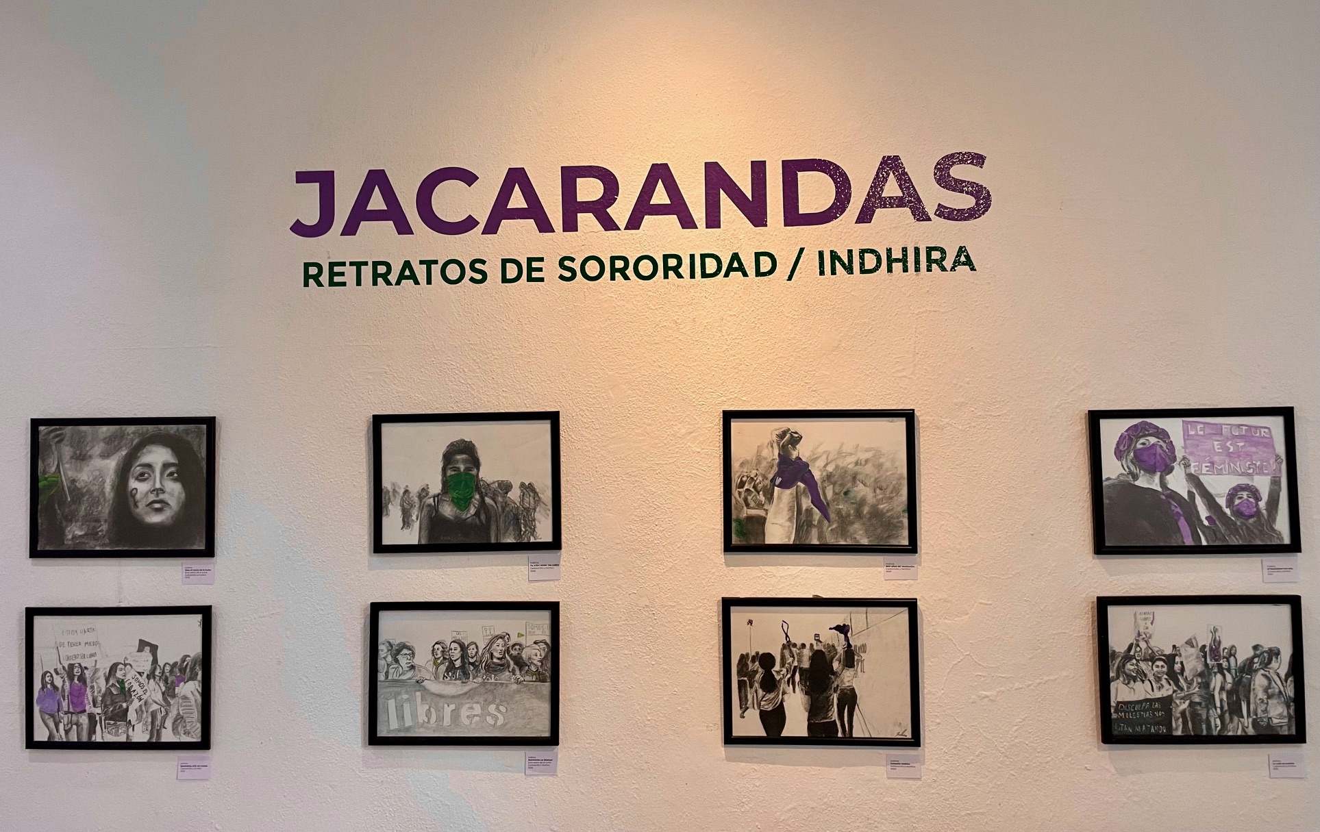 It is a collection of 30 drawings in pencil and acrylics by the artist Indhira of the International Day of Women marches. As the jacarandas bloom in March, so does the collective gathering of women to air the same grievances as the quilters — violence against women and children, bodily autonomy, the rights to self-determination, safety, equality, and respect.