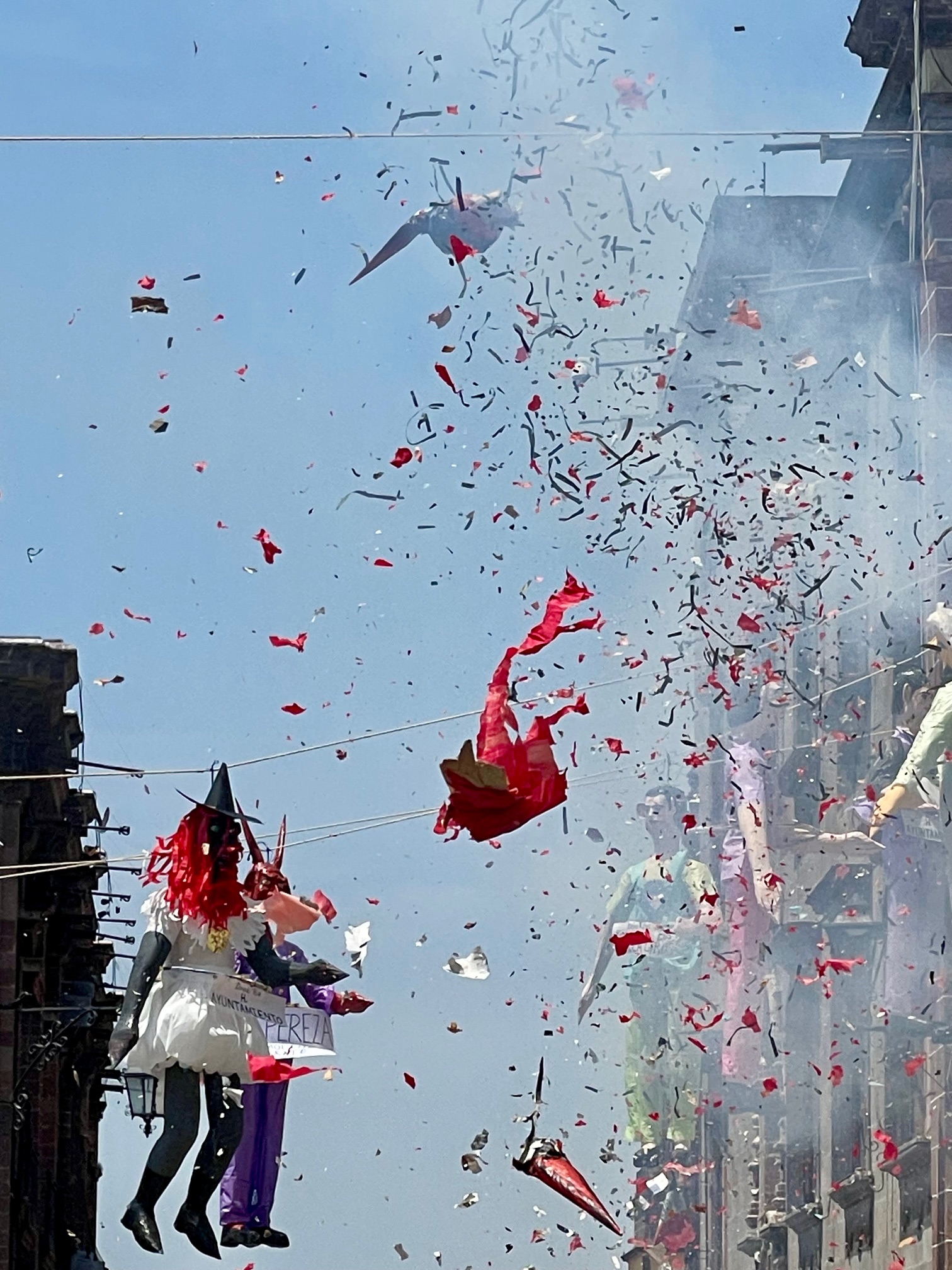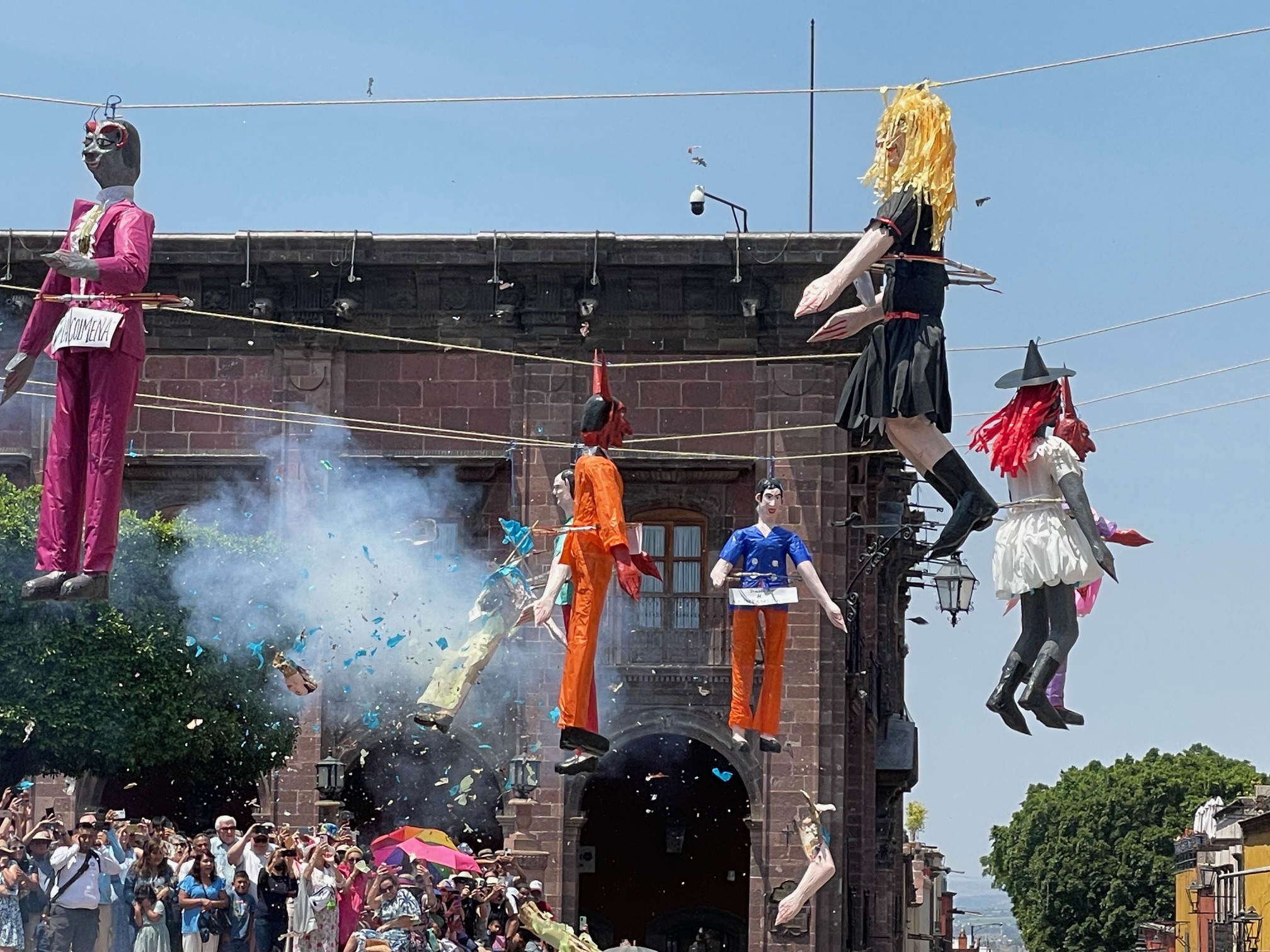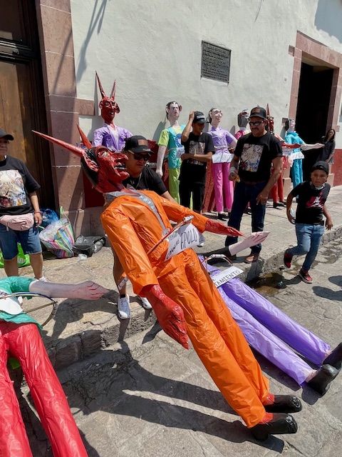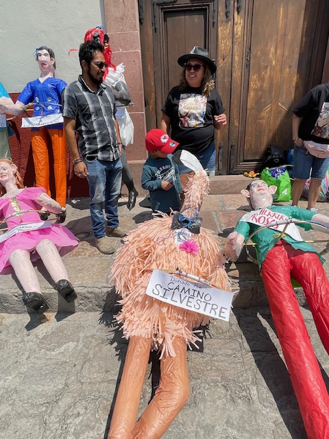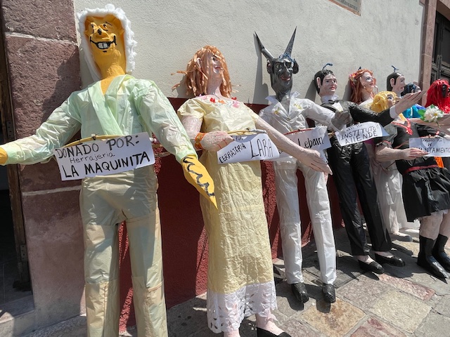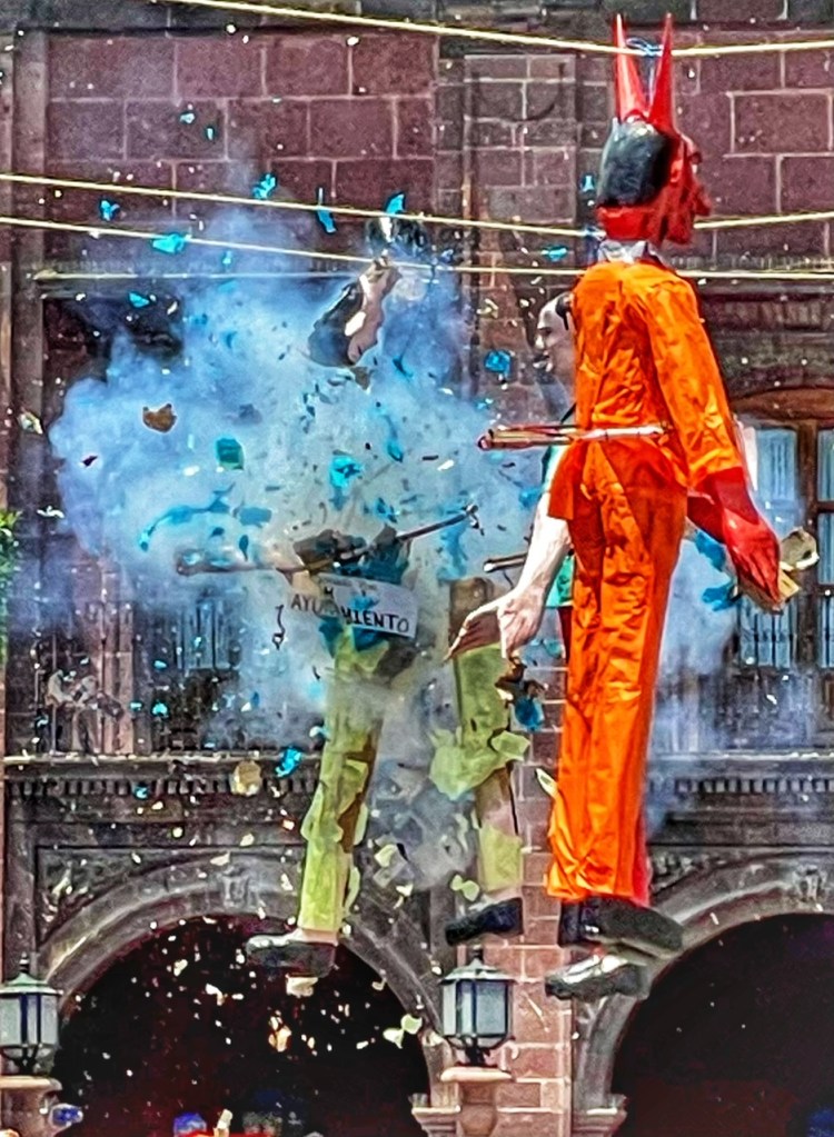 In the past, the life-size papier mache effigies were made to look like disreputable people — like politicians, celebrities, greedy businessmen, really bad sports stars, devils, the CEOs of oil and gas companies, nasty DJs, and the other nasty DJ. (He was the grand finale during the years when his racist, anti-Mexican rhetoric was peaking.)
