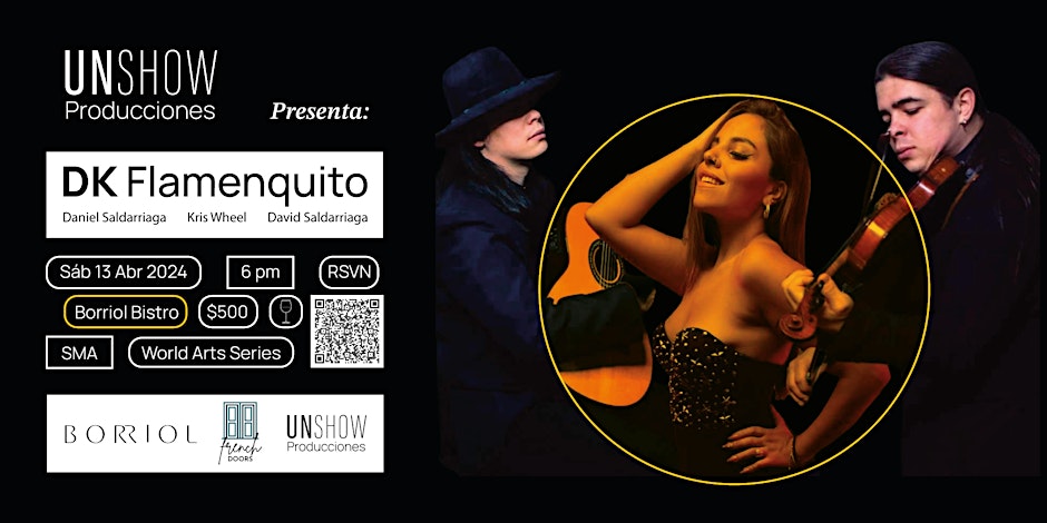 What better way than with DK Flamenquito – an enchanting evening of contemporary Flamenco, gourmet cuisine, and captivating art at the romantic Borriol Bistró, Calle Porton #17, in San Miguel de Allende?