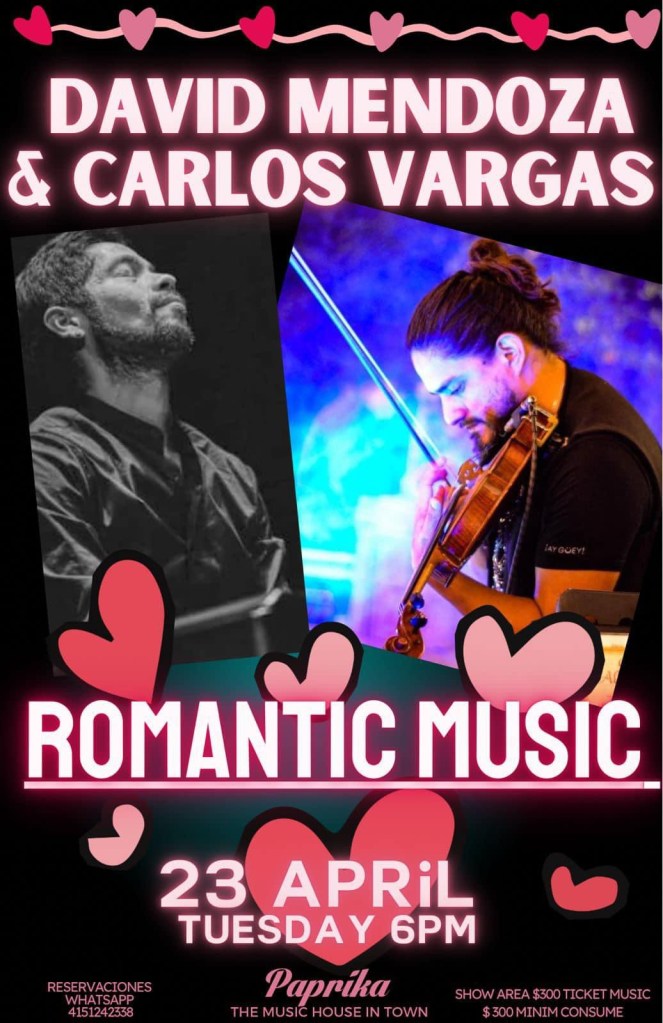 So, of course David has put together a night of romantic music which will be performed at Paprika “The Music House” on the Ancha. With David will be pianist/singer Carlos Vargas.