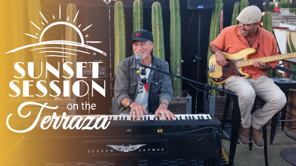 With days this hot, when the sun goes down, you want to be up on the roof, catching a hint of a breeze and feeling the music through your tequila haze. That’s not James Taylor but Steven Jaymes and friends up on the roof of Raindog Lounge. You never know who the friends might be. Could be Edgar Ordoñez on bass, Miguel Favero on cajón, Geoff Wadsworth on saxophone, Paul Segal on guitar, or local singers like Johnny Favorite, Fil Formicola, or María Sánchez. They’ve all shown up as Jaymes plays piano and guitar and sings.