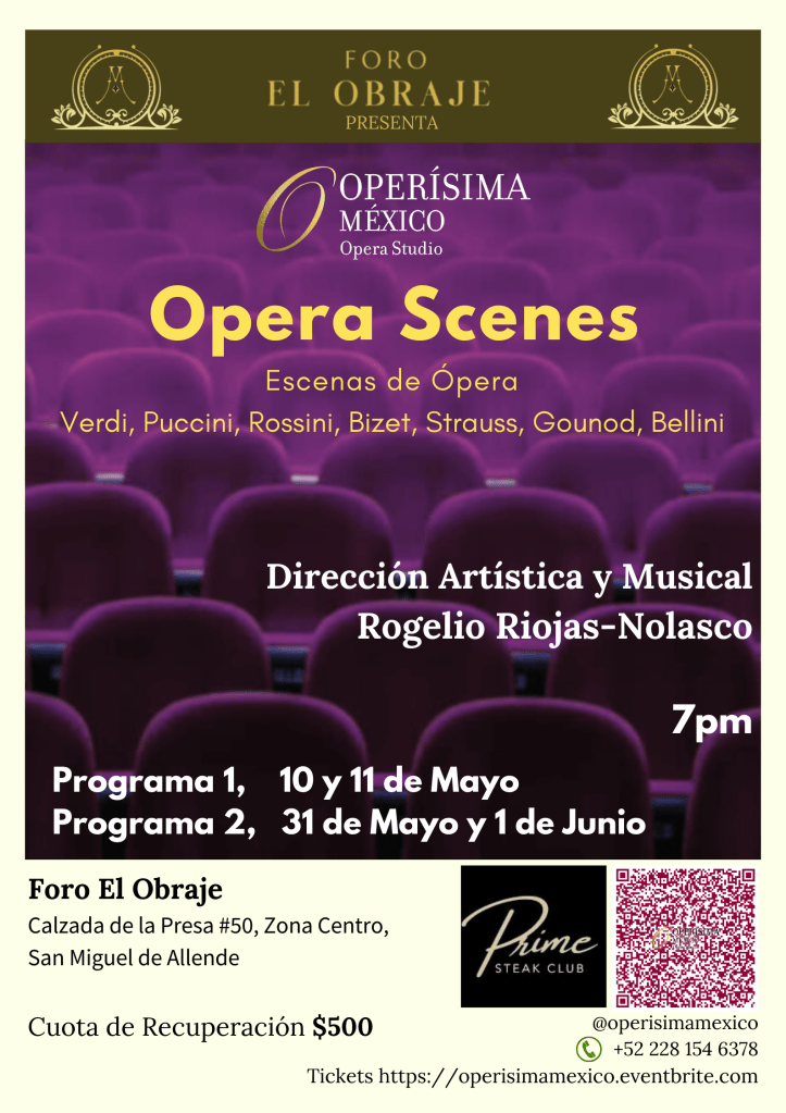 Operísima México Presents “Opera Scenes” under the artistic direction of Rogelio Riojas-Nolasco, with more than 10 artists on stage, members of Operísima México. Works from Verdi, Puccini, Bizet, Strauss, Gounod, Mozart, and Rossini, among others, will be performed.