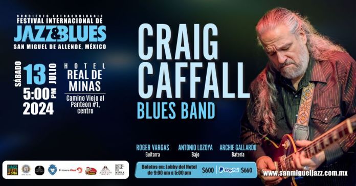 Bay Area blues singer/songwriter/guitarist Craig Caffall launches the 30th anniversary of San Miguel’s popular International Jazz and Blues Festival at Hotel Real de Minas, Camino Viejo al Panteón 1. Backing Caffal will be Alberto Pérez on guitar, Antonio Lozoya on bass, and Archie Gallardo on drums.