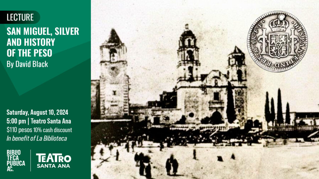 The talk is titled “San Miguel, Silver, and the Mexican“ and will be delivered by David Black in the Teatro Santa Ana of La Biblioteca. Tickets are $110 pesos. The talk is a benefit for La Biblioteca.