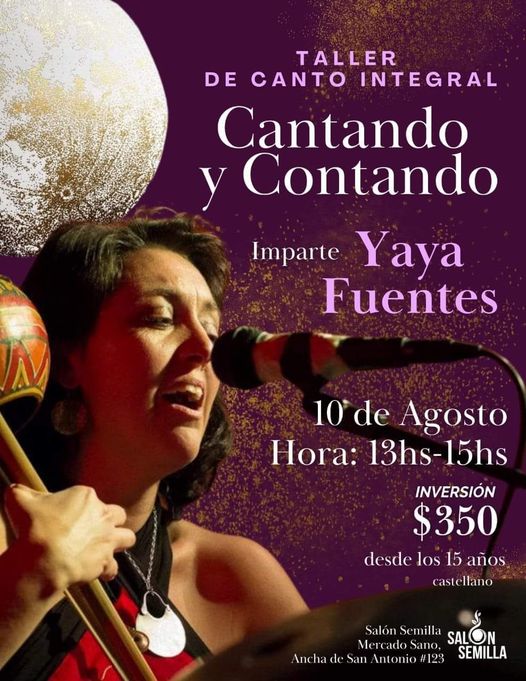 Chilean singer and musician Yaya Fuentes will unleash the hidden diva inside you in this vocal workshop in the Semilla Room at Sano Market. Singers, theatre artists, classroom teachers, social workers, therapists and general public is invited. Ages 15 and older. No previous experience required. There is room for 23 students. Instruction is in Spanish with some English.