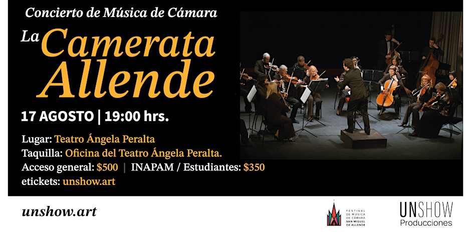 The Camerata Allende is recognized for excellence and dedication to the performance of chamber music. The ensemble is made up of instrumentalists who have forged careers both nationally and internationally. For more on the concert go to the Unshow website. (https://unshow.art/)