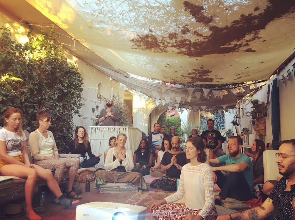 This week it’s 3:33 p.m. for Yoga Nidra with Alejandro Trejo and at 4:44 p.m. Kirtan with Mena & Briam K. Boyle. At 6:46 p.m. the community will gather for a potluck dinner. Bring some food, fruit, and drink to share.