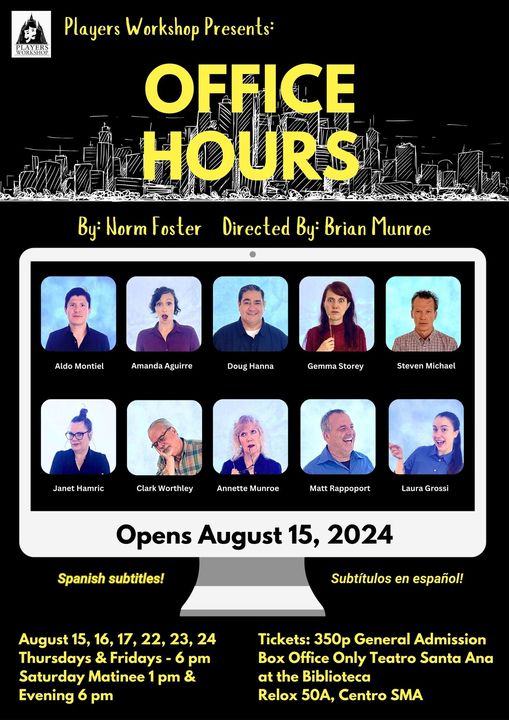 The Players Workshop of San Miguel de Allende launches its summer show, “Office Hours,” a comedy by Norm Foster and directed by Brian Munroe, with a cast of 10, of whom nine are making their San Miguel debut.