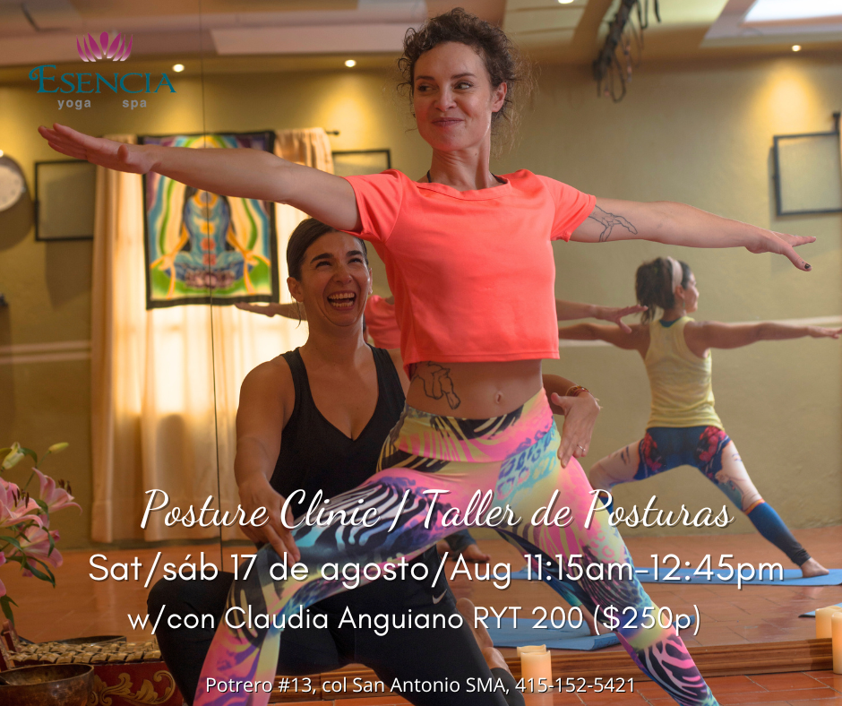 Esencia Yoga Spa (https://www.esenciayogaspa.com/), Portrerro # in Colonia San Antonio plans a monthly deep-dive into popular yoga postures. “Offering Alignment-based biomechanics of postures and their benefits physically, mentally and energetically. Creating sustainability for a safe lifelong practice and finding the pathway to the full expression of the pose.”
