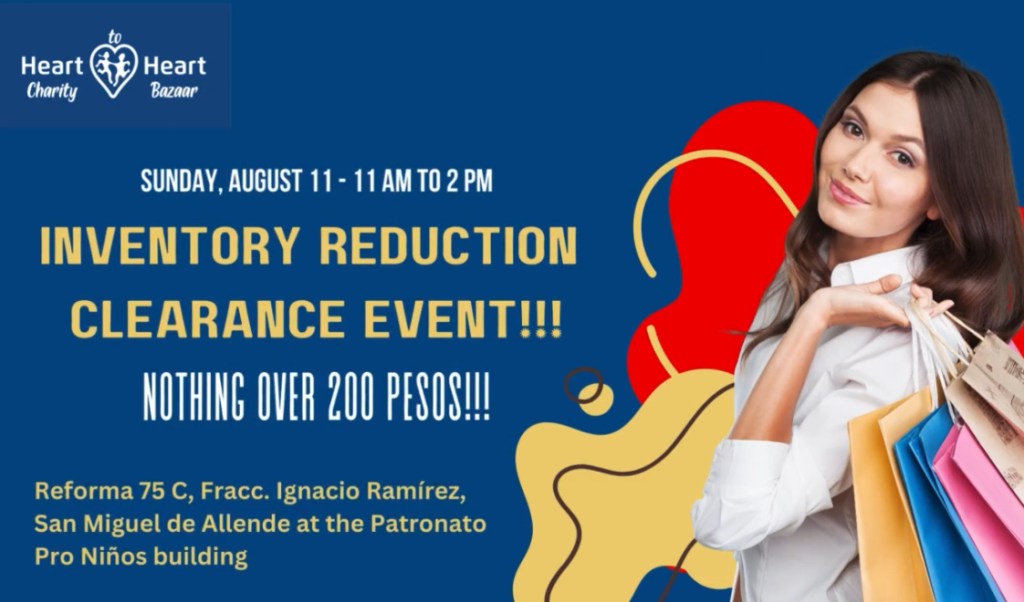 The Heart to Heart Charity Bazaar is famous for its well-stocked shelves of cool goods and hot deals but enough clutter — it is clearance time! They are reducing prices on merchandise in every department – women’s, men’s and children’s clothing, shoes, accessories, small appliances, linens, electronics, home decor, housewares, art.