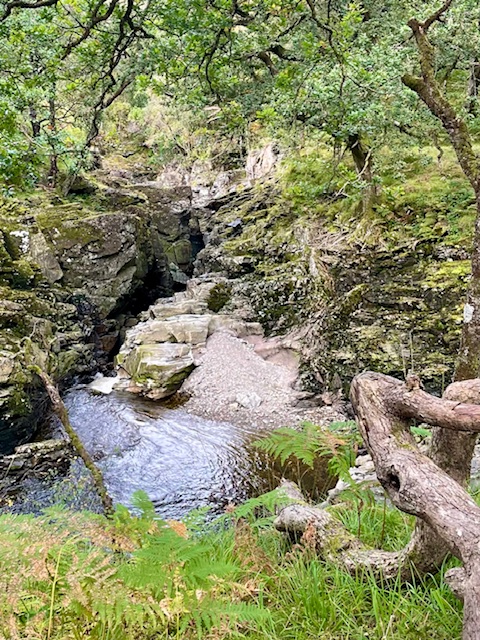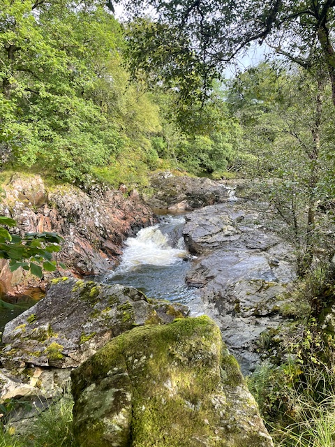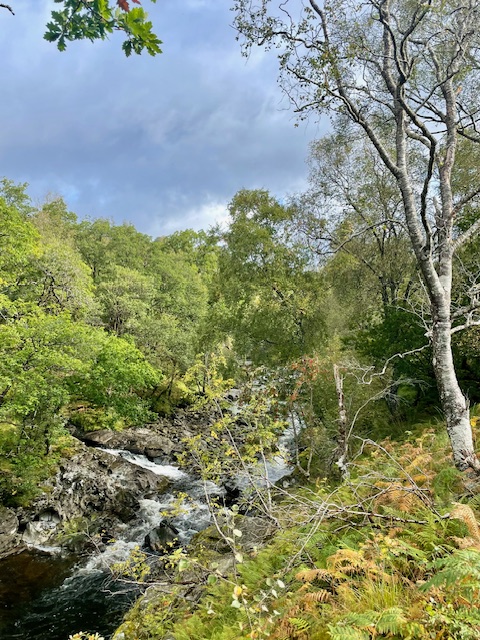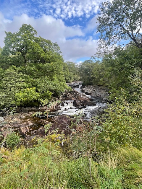 What we had was a fertile green valley with the thriving and tumbling cascade of the Falloch, its own music supplemented by the sound of scores of streams rushing down from the mountains to feed its gaping maw.