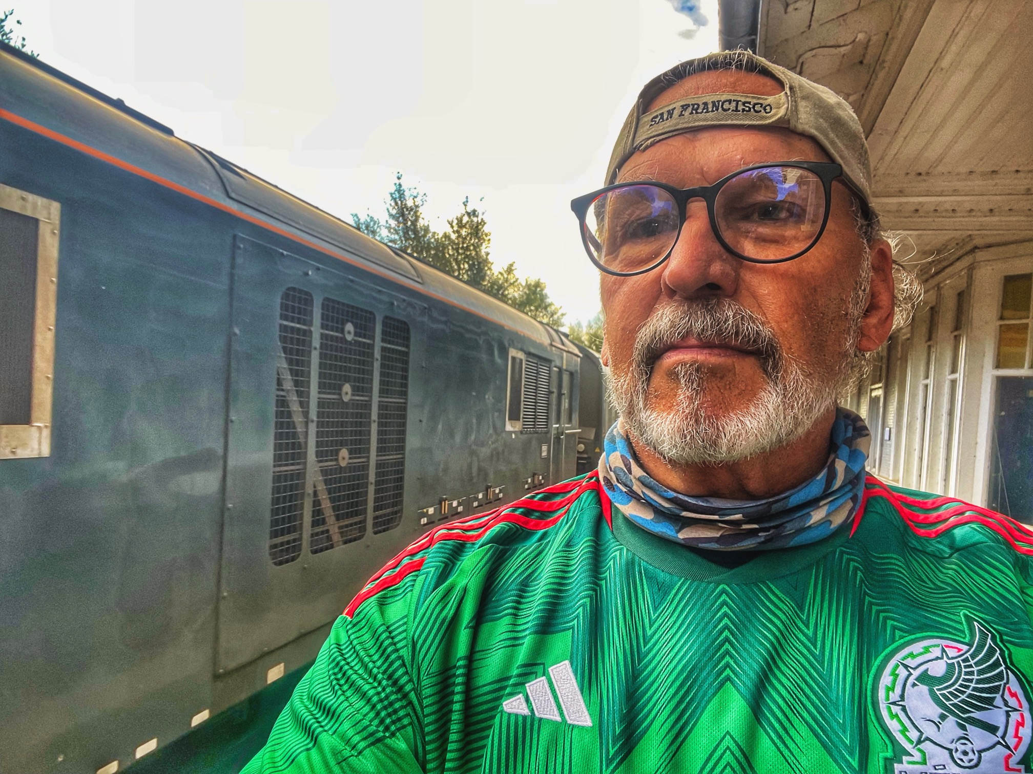 Getting this day going: me at the train station flaunting Tri-Colors for Mexico, the Bridge of Orky hotel, the eponymously named bridge and river, and my companions on the bridge: