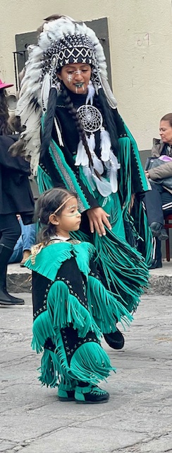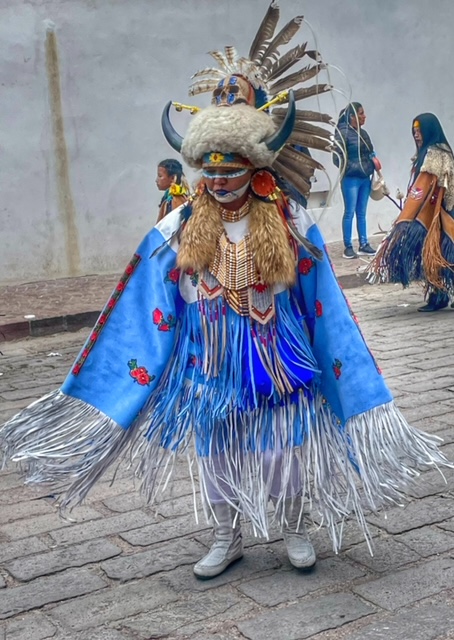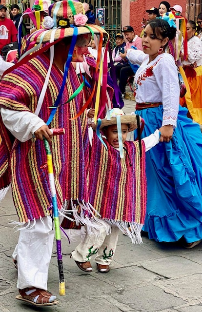 I was struck by how many families dress up, parade, and dance together. Men were holding babies. Mothers held infants. Couples walked with their children and the grandparents. It was the same with spectators on both sides of the Ancha de San Antonio, families as far as you could see.