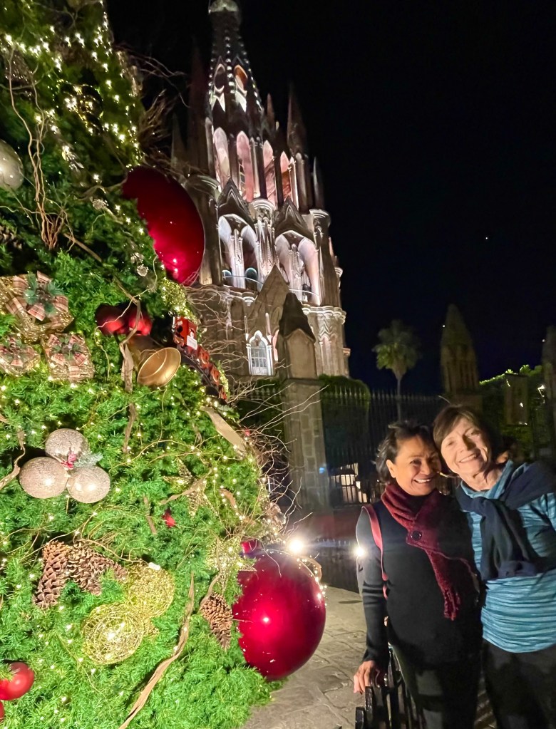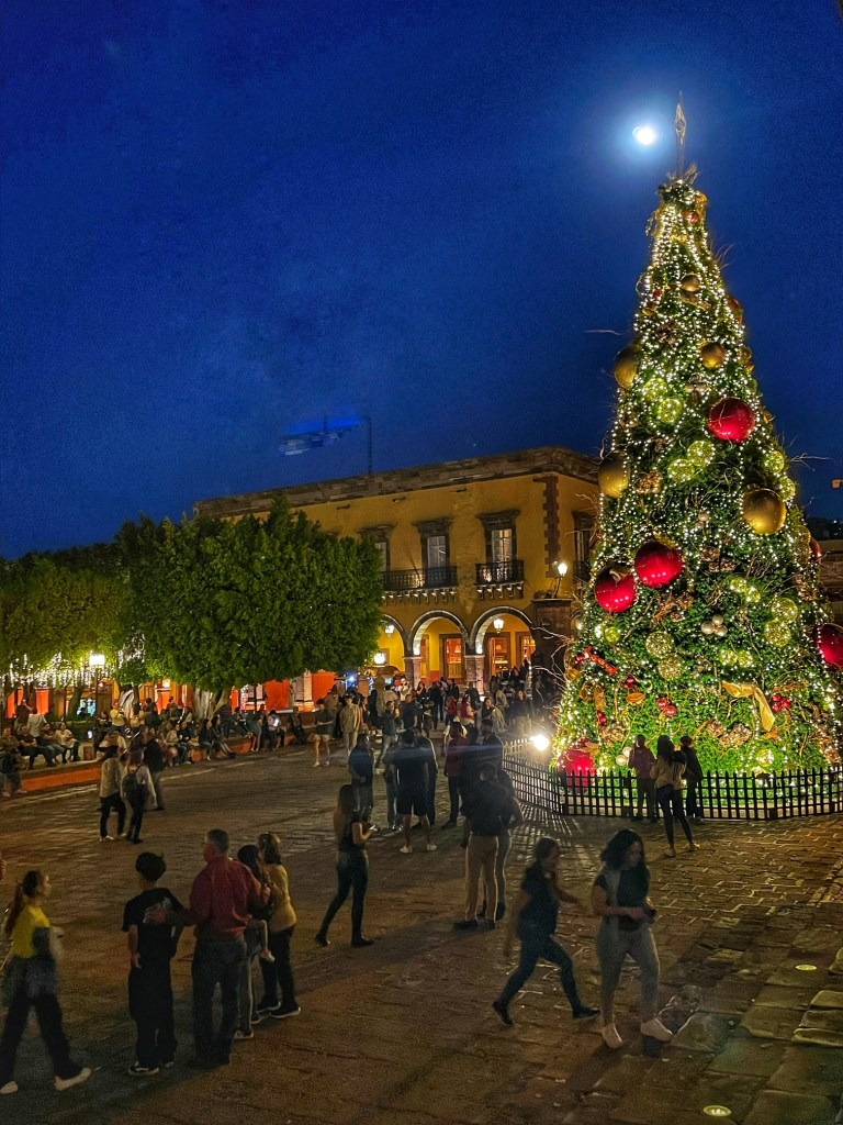 It was a delight to see so many families and visitors posing for photos in front of the tree and the Parroquia de San Miguel Arcangel, circling around mariachi bands, posing with mojigangas, strolling beneath fairy lights in the Jardin, munching on steaming ears of corn, window shopping, and promenading about the square.