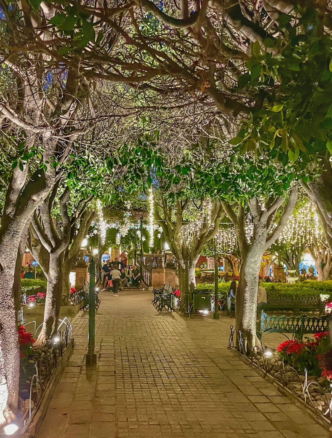 The Jardin Principal, the towering Christmas tree, and the surrounding streets have been well-lit for the holidays since Dec. 6, That was the night of our first thunder-and-lightning drenching in weeks.