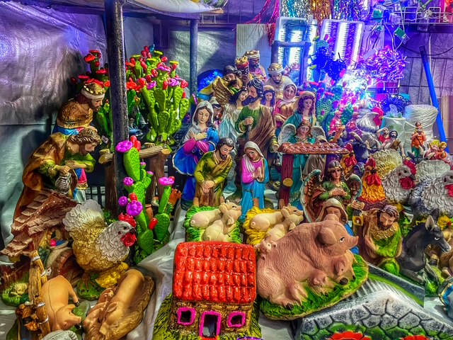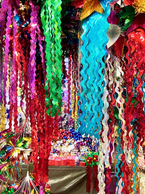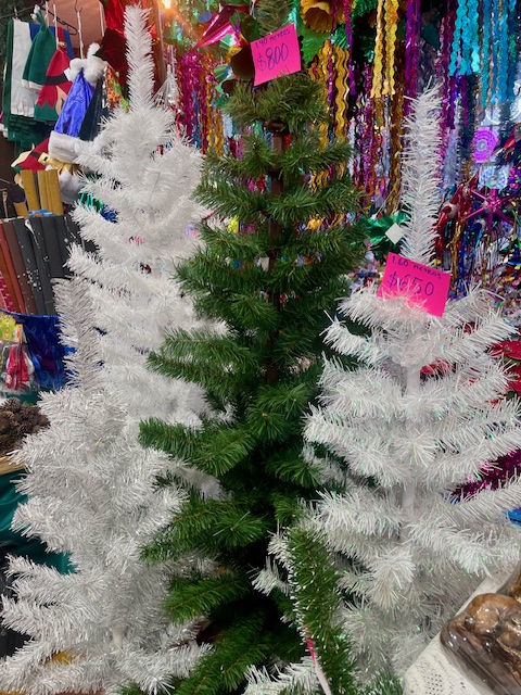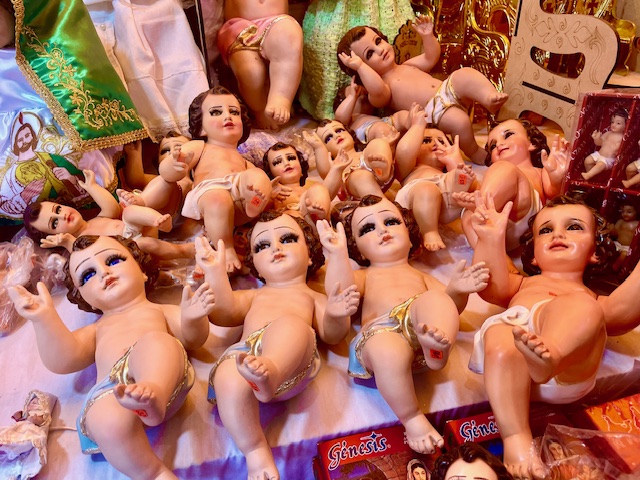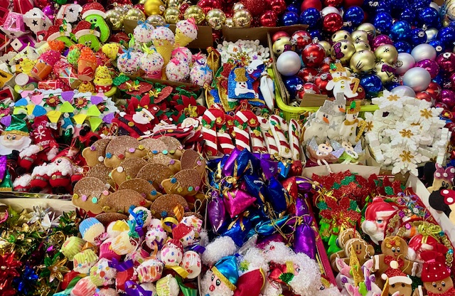Extra booths have been erected around the market and they are filled with ornaments, Nativity figures and accessories, decorations, Baby Jesus figurines of many hues and sizes (and gorgeous gowns of swaddling clothes), garlands, pines, sparklers, elf costumes, devil’s pitchforks, cuetlaxochitls, Santa caps, treats, and holiday fantasies.