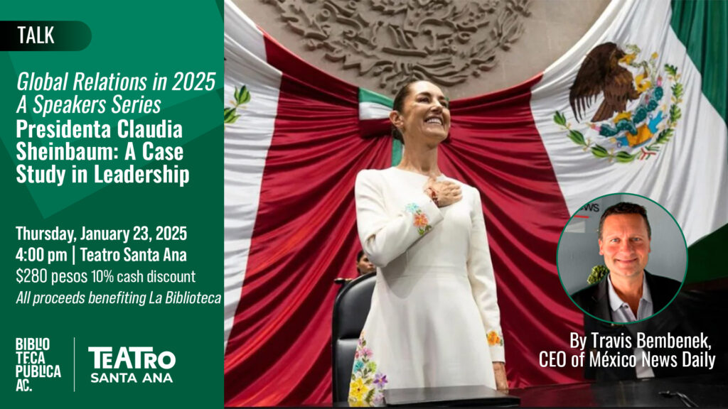 “Presidenta Claudia Sheinbaum: A Case Study in Leadership” at Teatro Santa Ana in the Biblioteca Thursday, January 23 at 4 pm.