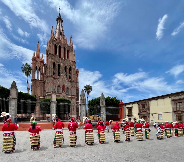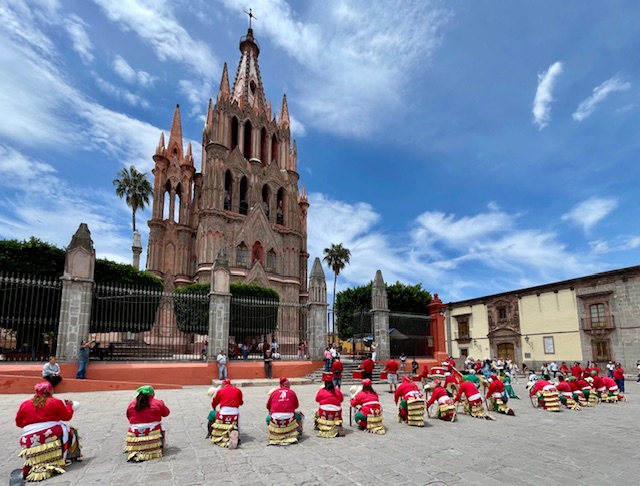 They danced and knelt in front of the Parroquia de San Miguel Arcángel for the better part of an hour, a singularly delightful form of devotion for the dancers and the audience.