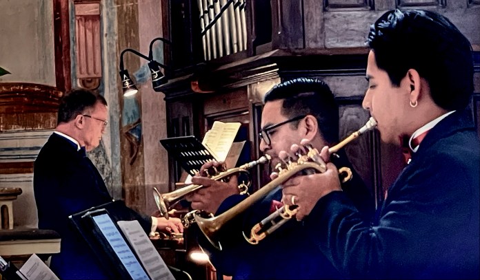 If the Christmas season got off to a banging start with the tree lighting and intensive fireworks display on Friday, the holiday was elevated to a serenely beautiful level on Sunday by a concert featuring organ and brass instruments in the Templo de la Tercera.