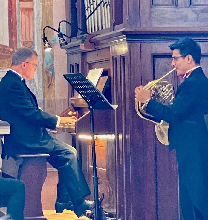The balance of the program was an exploration of Romantic and Baroque organ and brass creations, spanning the late 1500s through the early 20th century, from composers Gabrieli, Vivaldi, Pachelbel, Saint-Saens, Dvorak, Holst, and more.