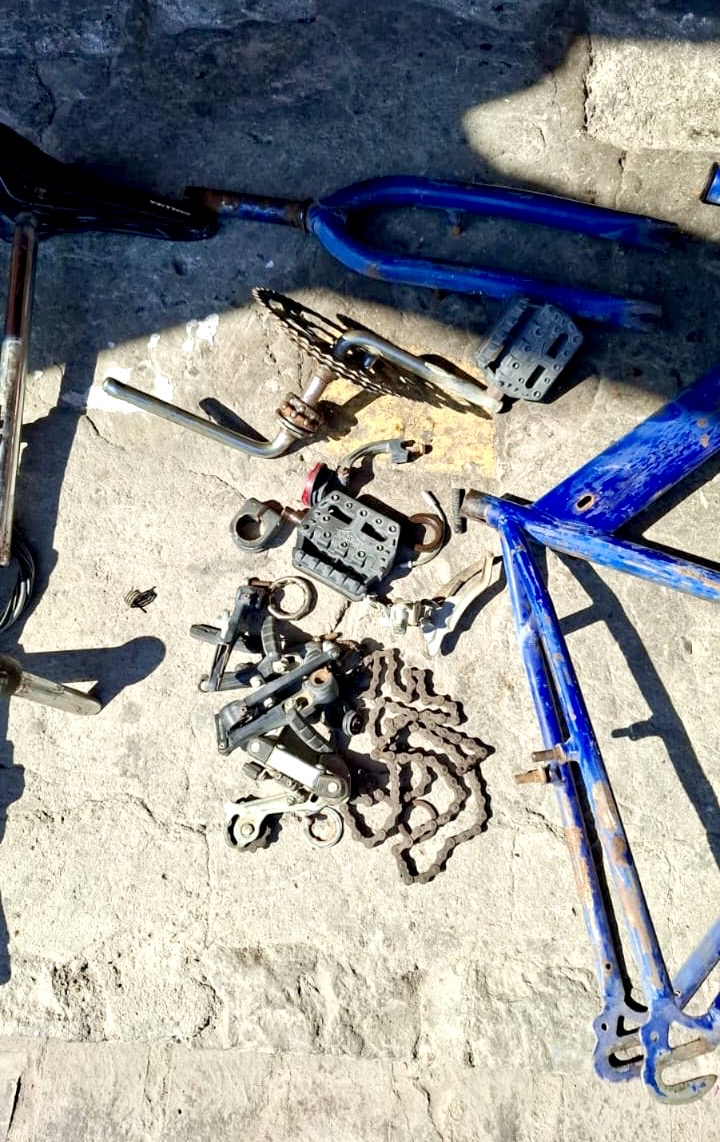 The bicycle was one of Mario’s projects, said CC. One of a few that were left unfinished with his sudden passing. Another, a small motorcycle boxed in pieces, was snapped up pretty quickly.