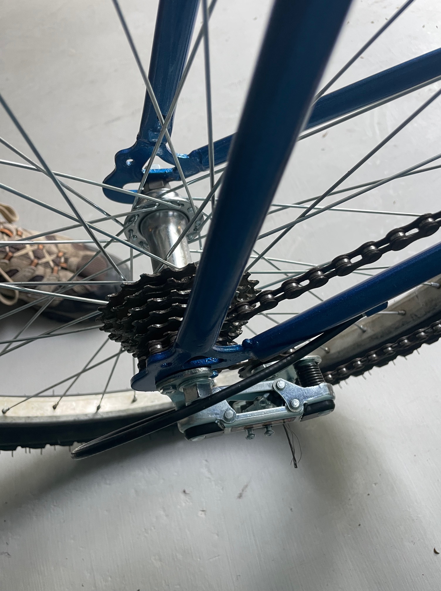 He added new hubs, a rear derailleur setup, cables, and spokes.